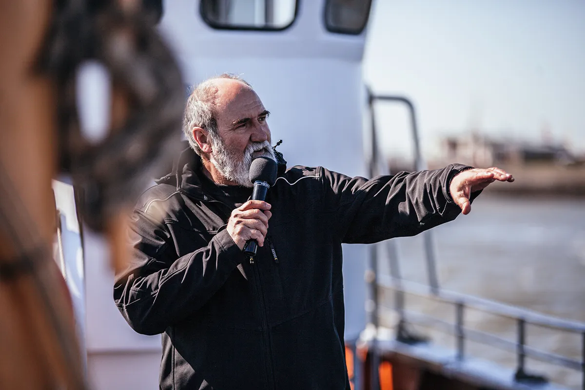 Zu unserem Glück ist heute blauer Himmel und die Nordsee glitzert im Sonnenlicht. Herrlich! Alle Passagiere von Groß bis Klein, von Jung bis Alt, haben sich mittlerweile an Deck eingefunden und wir stechen in See. Vorbei an der Hafenkante und ganz nah am Ellenbogen entlang, von wo aus uns Spaziergänger fröhlich zuwinken. Den Blick auf das Hafenpanorama auf der einen Seite und den Leuchtturm auf der anderen Seite, finde ich ich besonders schön.
