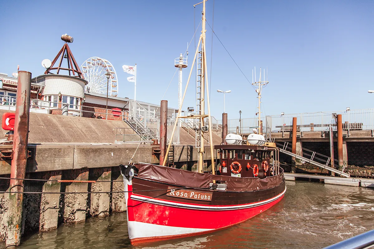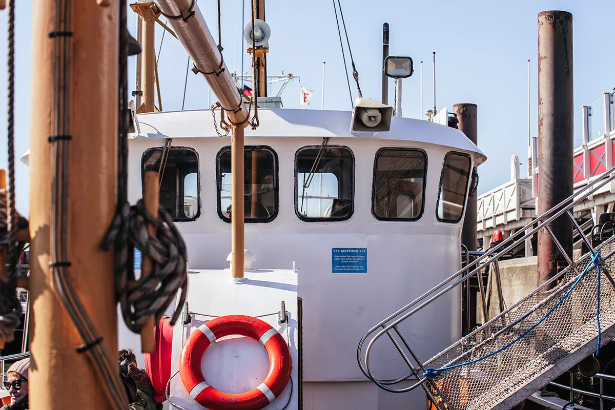 Meine Tour beginnt in der Hafenstraße in List. Dort befinden sich die Anleger der Ausflugskutter von Adler-Schiffe. Vorsichtig steige ich eine Planke hinab, um an Bord der „Gret Palucca“ zu gelangen. Sanft schaukelt der urige Kutter auf den Wellen im Lister Hafenbecken auf und ab, bevor unsere Fahrt zu den Seehunden beginnt.