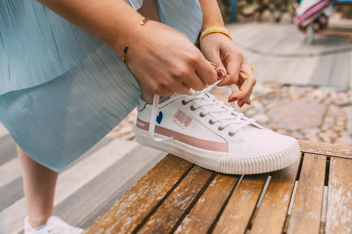 Die Sneaker sind eine Sonderanfertigung. Sie wurden mit dem blauen Herzen von AFJ 💙 Keitum veredelt.