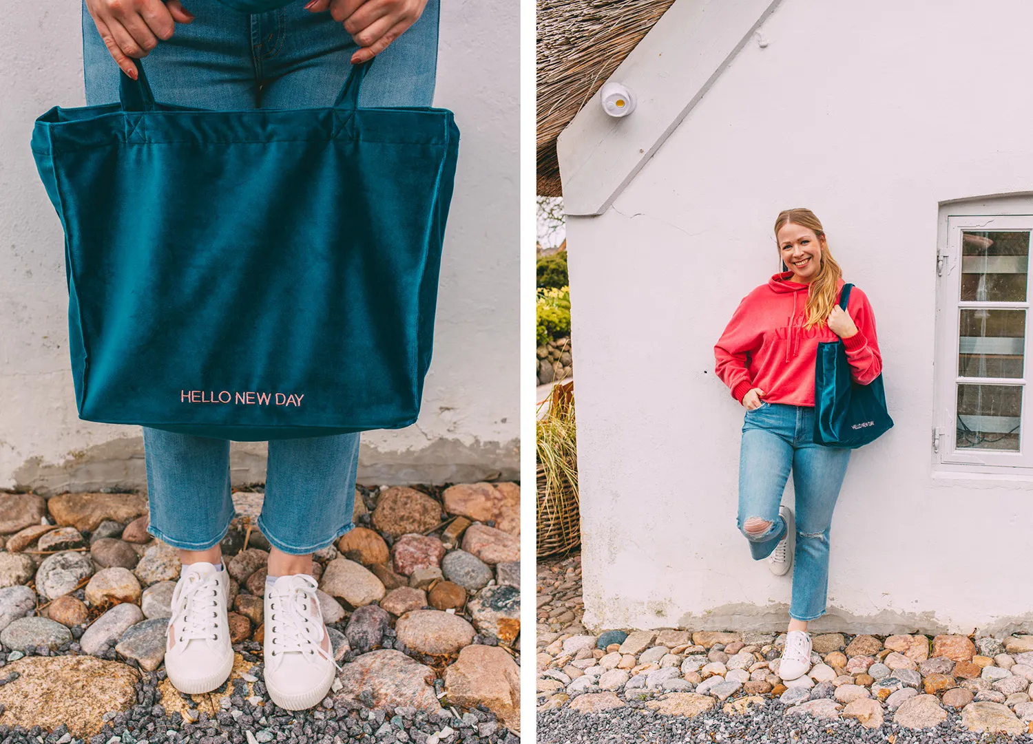 Ich freue mich so sehr, dass die Temperaturen steigen – und Axel und Britt ebenso. Darum haben sie ihr Modesortiment in diesen Monaten auch wieder besonders frisch und bunt gewählt. Das macht Lust auf Sommer! Der pinke Hoodie der Marke Liv Bergen hat es mir in Kombination mit der samtigen Shoppertasche von Sorbet Island besonders angetan. Bei diesem Outfit strahlen nicht die nur munteren Farben, sondern ich gleich mit :-).