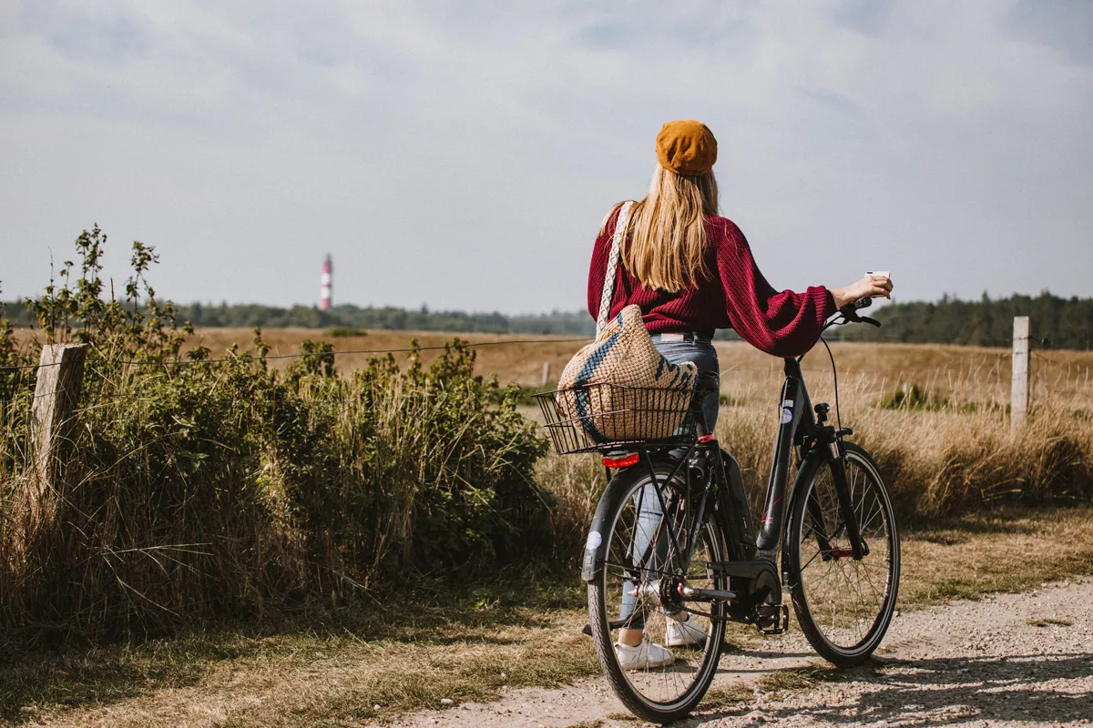Direkt am Anleger schnappen wir uns zwei E-Bikes – die beste Art, Amrum zu entdecken. Sieben Stunden Aufenthalt reichen locker für eine Runde über die Insel: Von Wittdün im Süden über Nebel und Süddorf bis hoch nach Norddorf und zurück. Knapp 20 Kilometer, die mit E-Unterstützung spielend leicht zu schaffen sind.