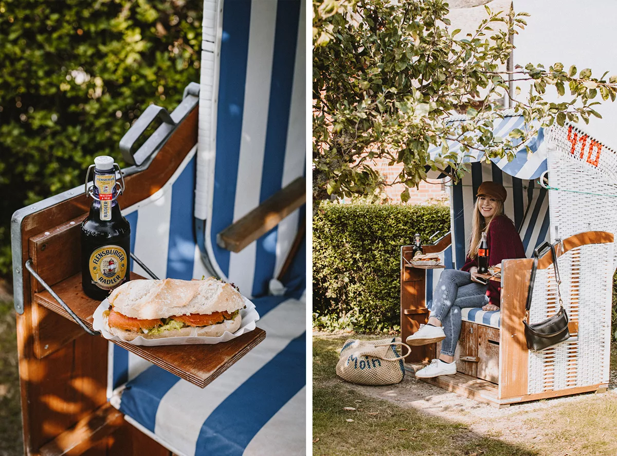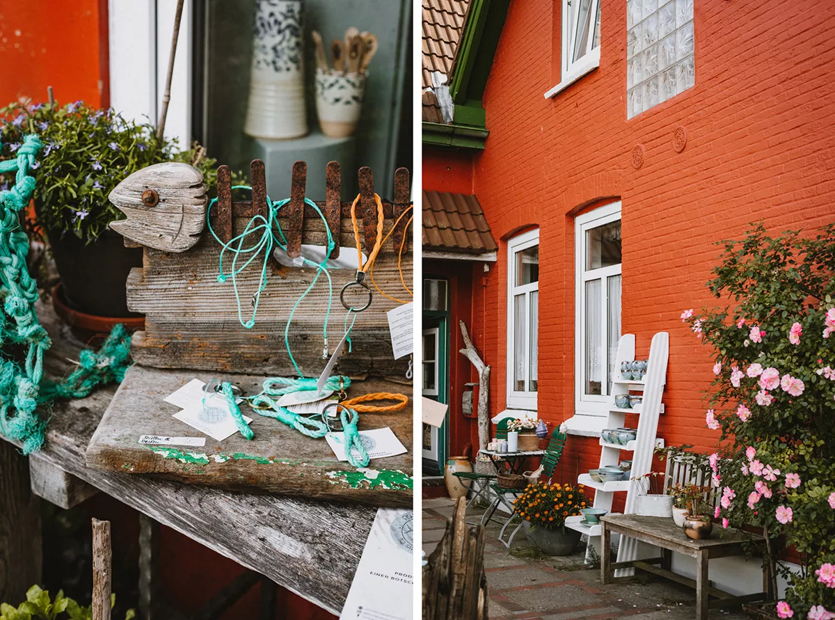 Das reetgedeckte Dorf Nebel ist Bilderbuch-Nordsee pur: kleine Läden, Cafés mit Gärten und Kopfsteinpflasterwege. Bei Fisch & Meer gönne ich mir ein Fischbrötchen mit Graved Lachs – so lecker!