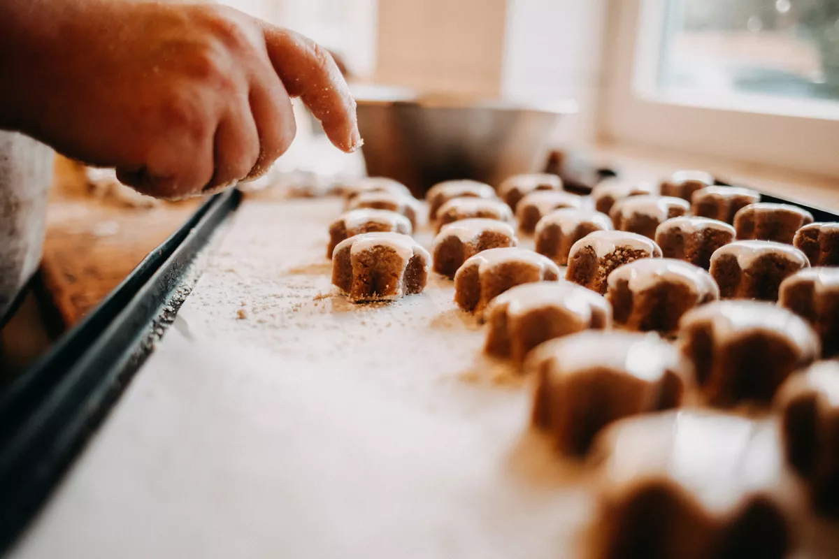 Die Bäckerei Abeling ist nicht nur die älteste Bäckerei Sylts, sie ist ein lebendiges Stück Inselgeschichte. Seit 1886 gibt es sie schon! Klaus und Angelika Funke übernahmen das Geschäft 2008 und gaben es vor zwei Jahren an Sohn Heiko weiter. Besonders schön: Das Backhandwerk ist in der Familie Funke tief verankert, denn egal ob Opa, Vater, Sohn, Onkel oder Tante – sie alle backen hauptberuflich! In der Vorweihnachtszeit unterstützt Klaus seinen Sohn weiterhin mit voller Hingabe. „Mein Vater liebt traditionelle Rezepte mit Weizen und Butter. Ich experimentiere auch gerne mit Einkorn und Dinkel“, verrät Heiko mit einem Schmunzeln.