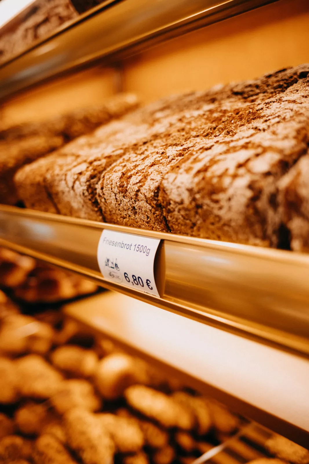 Auch die Vielfalt an Broten ist beeindruckend. „Wir verwenden acht verschiedene Sauerteige, die wir jeden Tag neu ansetzen – immer vom alten Sauerteig abgenommen, um den Geschmack zu bewahren“, erzählt Heiko. Diese Technik bringt eine Vielfalt an Aromen hervor: Vom Sylter Körnerbrot bis zum würzigen Fenchelbrot – hier findet jeder sein Lieblingsbrot. Hinzu kommen über 20 verschiedene Brötchensorten, die von herzhaft bis süß jede Geschmacksvorliebe abdecken.