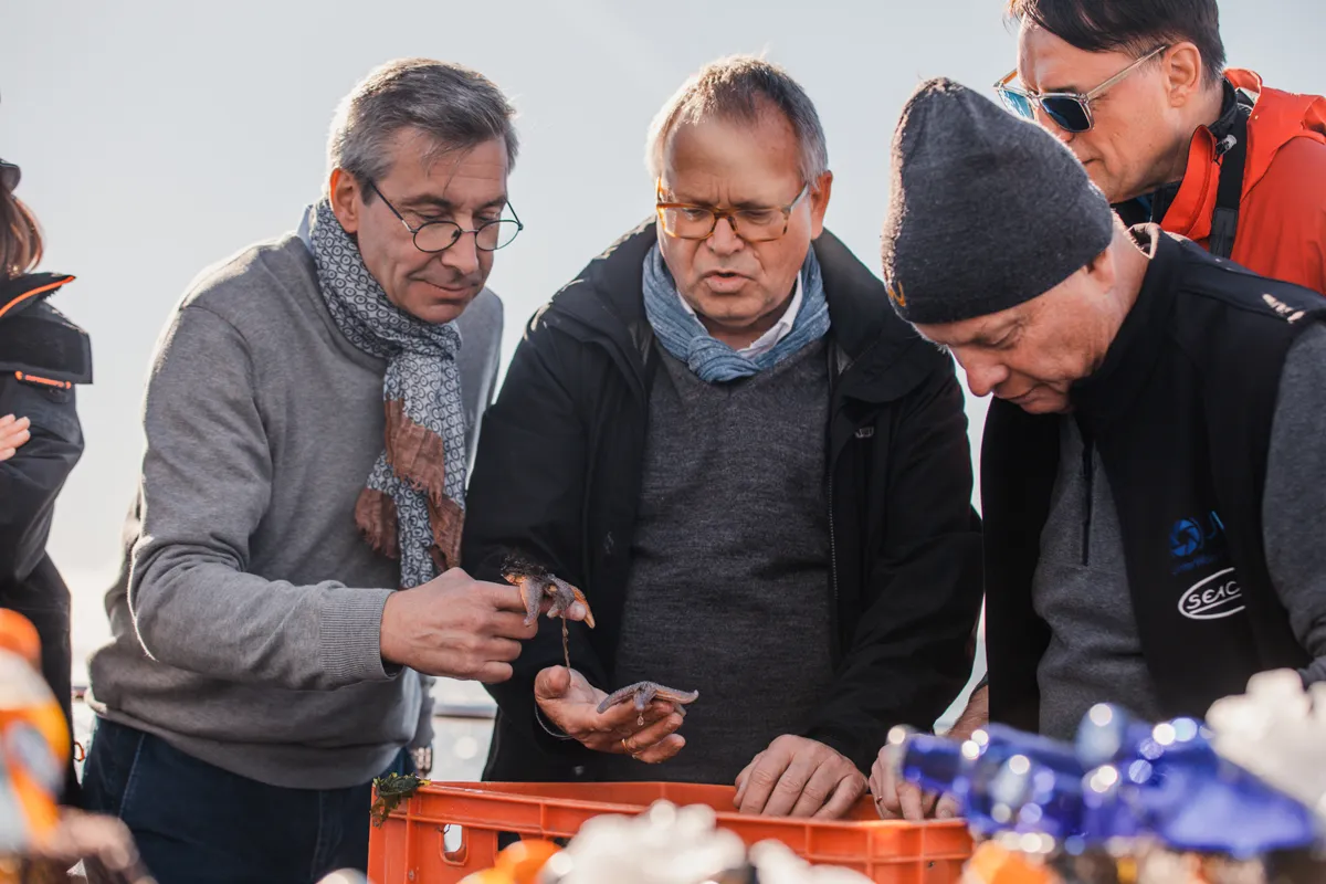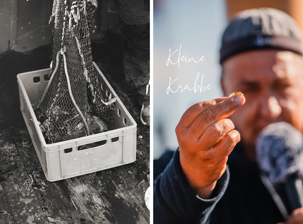Um das Wattenmeer auch vom Wasser aus zu erleben, geht es für uns nun an Bord eines Ausflugskutters. Unser Ziel: Die Seehundbänke. Während wir auf der Nordsee schippern, erzählt uns der Kapitän interessante Seemannsgeschichten. Sein Matrose lässt derweil ein Schleppnetz zu Wasser, um uns die Meeresbewohner der Nordsee näher vorzustellen. Er packt eine große Kiste in unsere Mitte auf einen Tisch. Darin tummeln sich Krabben, Austern, Taschenkrebse und Muscheln, über die wir Wissenswertes erfahren.