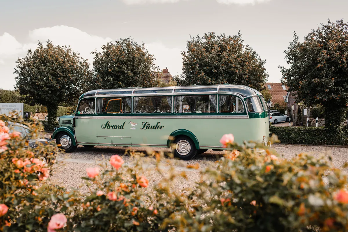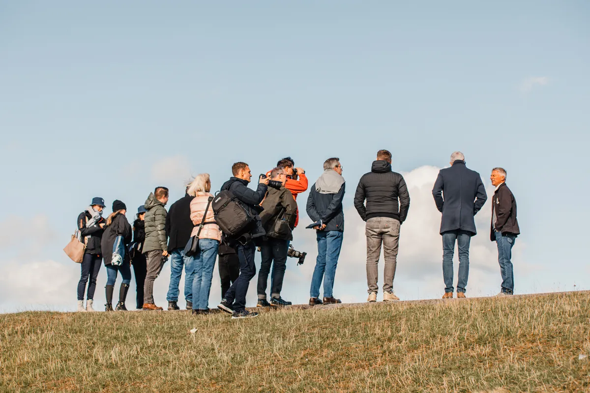 Um uns selbst ein Bild von dem geplanten Projekt zu machen, geht es für uns am zweiten Eventtag mit einem schicken Oldtimerbus auf eine spannende Inseltour. Erste Station: das Rantumbecken. Hier möchten uns Prof. Dr. Ralph O. Schill und Prof Dr. Franz Brümmer von aquatil nicht nur Wissenswertes rund um das einzigartige Naturschutzgebiet näher bringen, sondern auch zeigen, wo die Brustplätze gebaut werden.