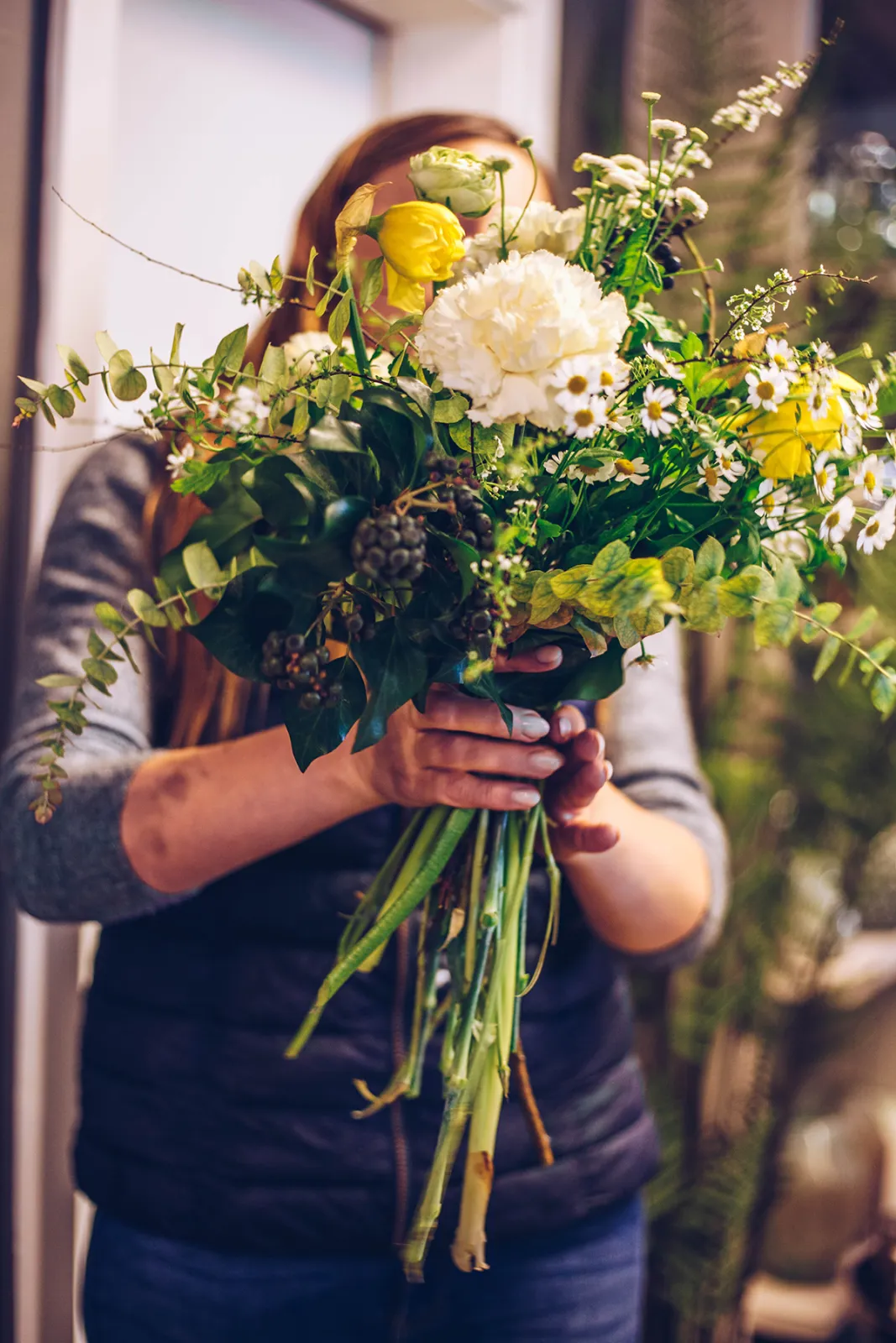 Doch wer ist für diesen blumigen Zauber verantwortlich? Während Inhaberin Imke hinter einer Werkbank voller Zweige, Gräser, Gartenscheren und Bänder ein imposantes Bouquet für mich bindet, schnacken wir über ihren Lebensweg. Die braunhaarige Frau mit dem liebevollen Lächeln hat das Handwerk der Floristin schon mit 16 Jahren gelernt, war lange Zeit für ein Unternehmen, das Deko-und Wohnaccessoires vertreibt, tätig und bringt somit nicht nur jede Menge Berufserfahrung mit. Imke sprüht nur so vor Kreativität und hat seit der Übernahme des Ladens vor einigen Monaten ihre persönliche Note in jeden Bereich einfließen lassen. Sie möchte anders sein, individueller arbeiten, eben das umsetzen, was sie ausmacht.