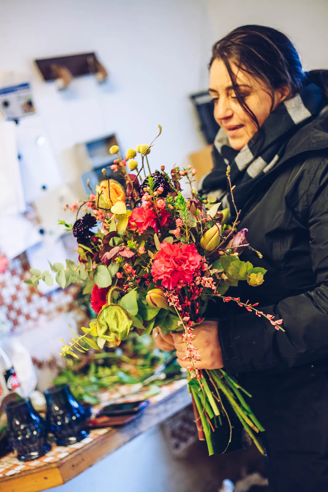 Was ich besonders beeindruckend finde? Die riesige Auswahl an Frischblumen. Selten habe ich so viele Sorten auf einmal gesehen. Kaum zu glauben, aber Imke fährt wirklich zwei Mal die Woche mit ihrem Transporter nach Hamburg auf den Blumengroßmarkt, um neue Ware einzukaufen. Mitten in der Nacht macht sie sich auf den Weg, um die schönsten Blüten auf die Insel zu holen. Ein Job, den man nur machen kann, wenn das Herz dafür schlägt!