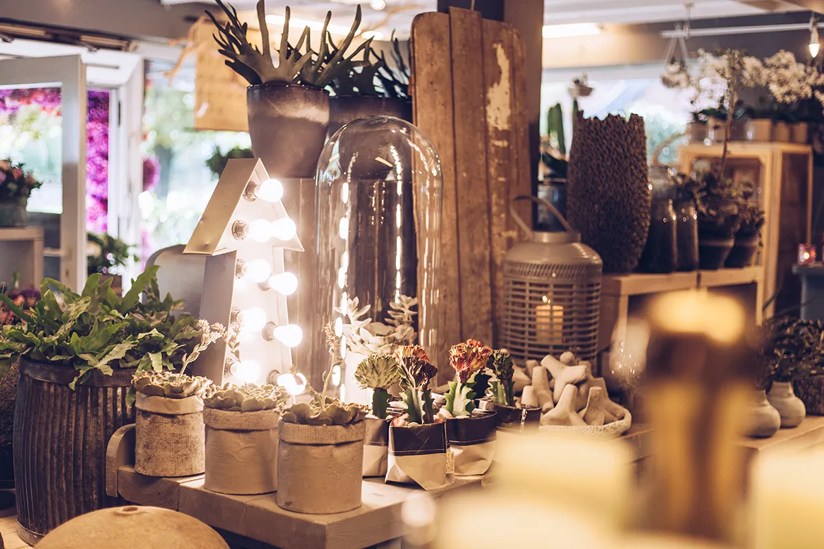 Blumen Hansen beinhaltet all das, ist aber dennoch anders. Das liegt nicht nur an der Blumengirlande, die sich um die Eingangstür schlängelt. Auf mich wirkt das relativ große Geschäft fast mehr wie ein Kunststudio. Der Raum ist in Themenwelten gegliedert, es gibt verschiedene Deko-Artikel zu bestaunen wie auch zu erwerben und selbst die kleinste Ecke wirkt bis ins Detail einladend und liebevoll gestaltet. Ich fühle mich beim Stöbern wie ein Kind an Ostern, das zwischen all den Sträuchern und herrlich duftenden Rosen, Dahlien und Lilien einen Schatz nach dem anderen zum Vorschein bringt. Im Hintergrund dudelt leise Musik und das Team – besser gesagt die fleißigen Bienen, die hier werkeln – sind sehr gut gelaunt, fröhlich und einfach nett. Man hat richtig Lust, sich länger im Laden aufzuhalten.