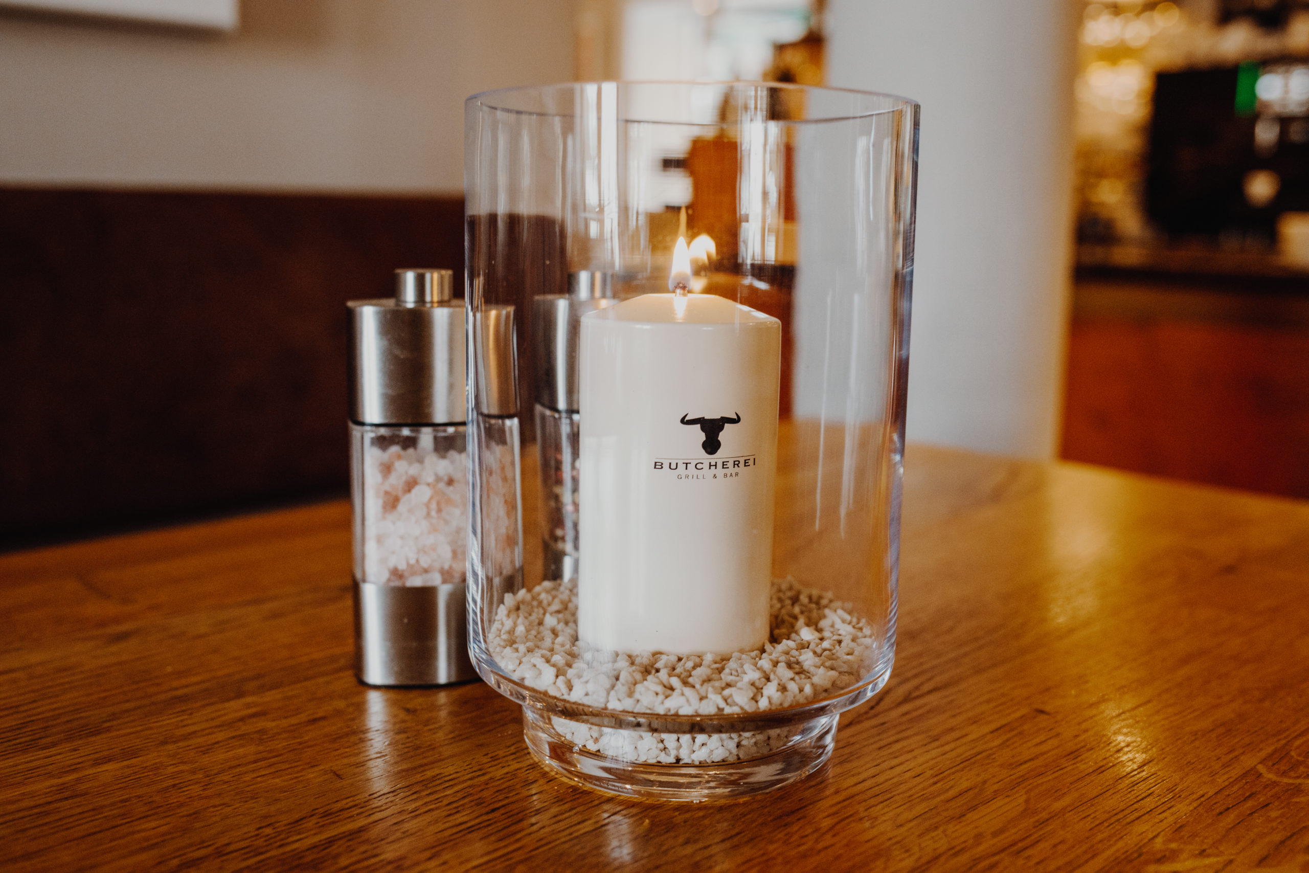 Das Ambiente in der Butcherei ist dank eines Kamins so richtig gemütlich. Die Metallstiere als Wandbeleuchtung, die dunklen Eichendielen und die farbenfrohen Bilder von Künstlerin Freddy Reitz verleihen dem Steak-House das passende urige Flair. Im Sommer kannst du sogar auf einer hübsch angelegten Terrasse Platz nehmen.