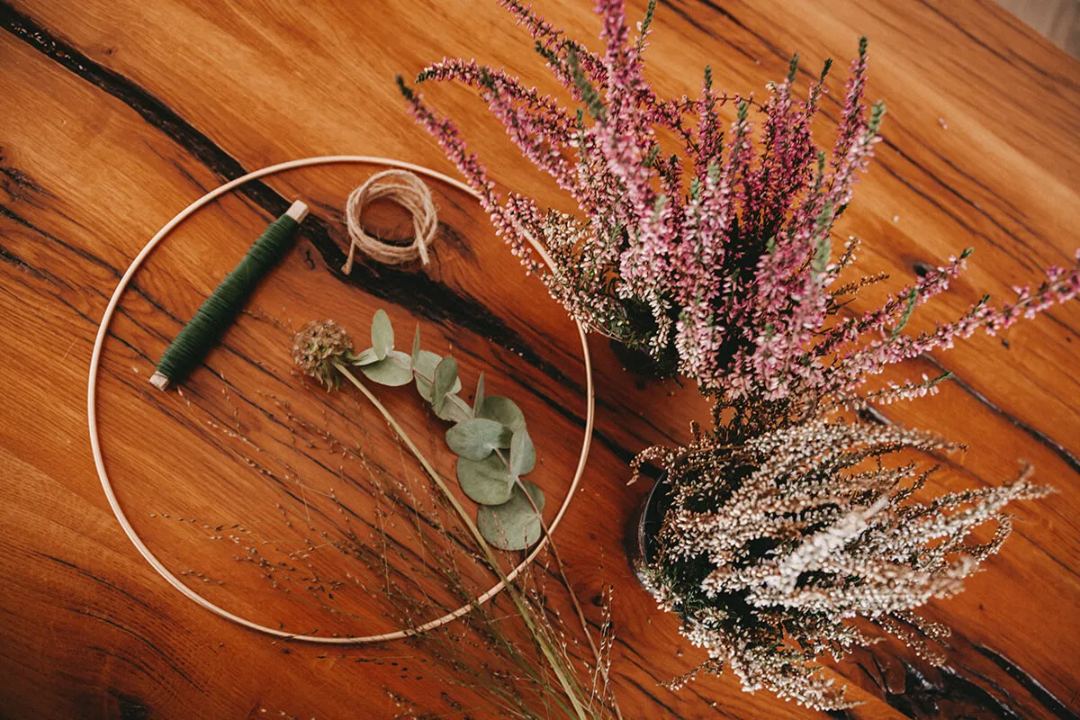 Idee 3: Ein Scandi-Kranz mit Heideblüten