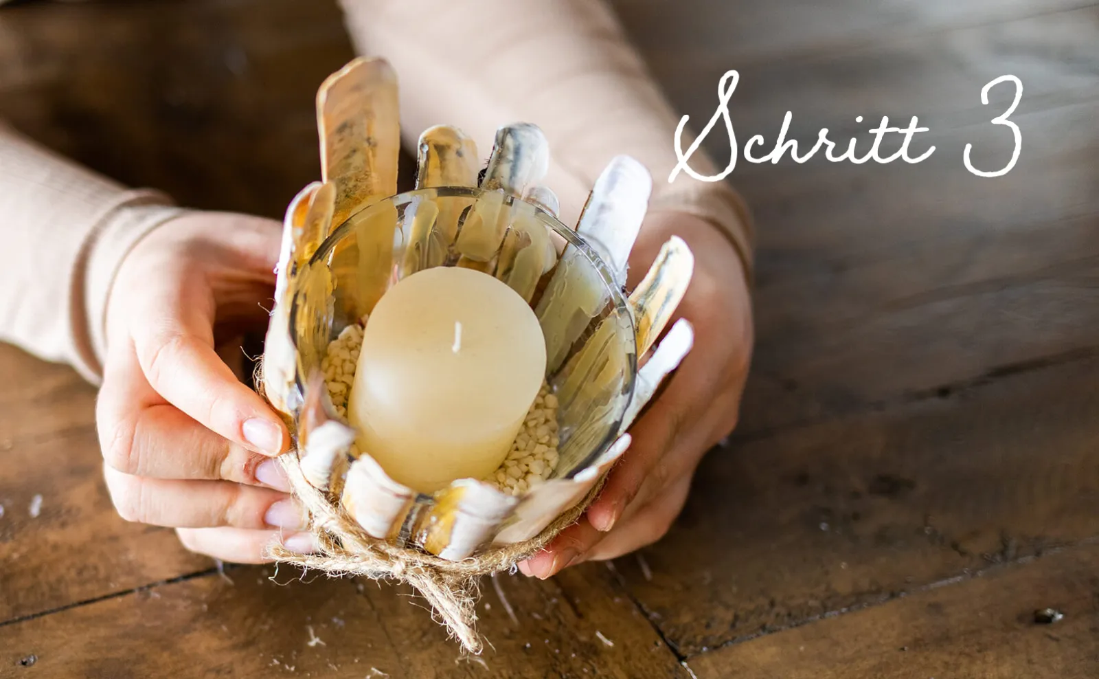 Wenn die Sylt-Sehnsucht zu groß ist und du denkst, es geht nicht mehr – dann kommt von irgendwo ein Lichtlein her. Zum Beispiel von deinem selbst gebastelten Teelicht mit eigens gesammelten Schwertmuscheln von der Insel. Dieses DIY hast du in nur drei Schritten und mit wenig Material im Handumdrehen fertig!