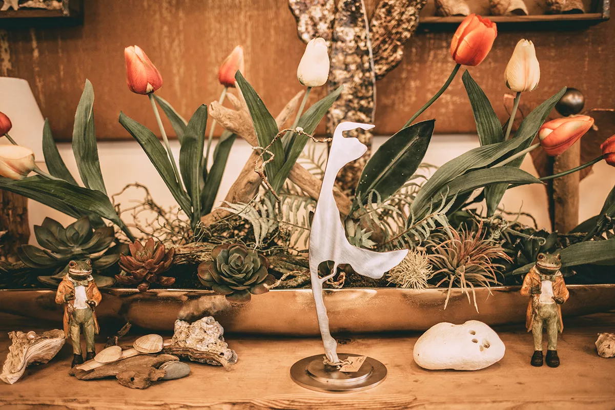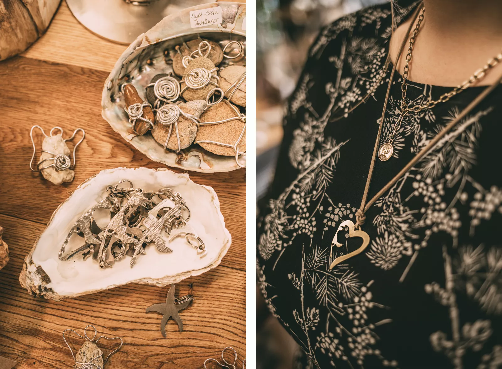 Im Store tummeln sich Möwen, Kompasse, Quallen und Leuchttürme von klein bis groß, die ich einfach mit dem Norden, mit Sylt verbinde. Das liebevoll gestaltete Syltherz als Kettenanhänger, die Themeninseln und Treibholzobjekte haben es mir besonders angetan.