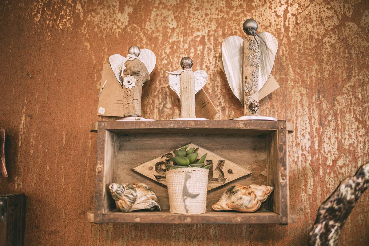 Der Kunstschmied Frank Fidrowicz und seine Frau Iara bauen aus gesammeltem Treibholz in Kombination mit geschmiedetem Metall allerlei Sylter Kostbarkeiten. In liebevoller Handarbeit fertigen sie unter anderem imposante Strandengel aus angespülten Lahnungspfählen an. Ich zeige dir die kleinen und großen Unikate in ihrem Fissimo®-Sylt Store in Westerland.