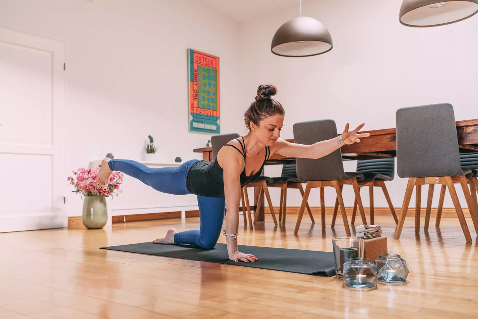 Das erste Mal habe ich zusammen mit meiner Mama Yoga gemacht. Damals waren wir im Urlaub auf Palma. Wir hatten einfach Lust, etwas Neues auszuprobieren. Der Sport hat mich sofort berührt und gefesselt, sodass ich wusste, dass ich auch zu Hause gerne damit weitermachen möchte. Das ist jetzt schon über 10 Jahre her.