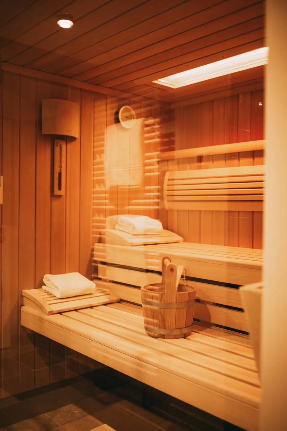 Der Spa-Bereich im Aarnhoog ist ein Traum. Man schwimmt unter einer Glaskuppel dem Himmel entgegen, lässt sich im Whirlpool treiben oder schwitzt sich in der Sauna im Private-Spa den letzten Festlandstress aus dem Kopf – und nach einer gebuchten Massage schwebst du über die Insel.