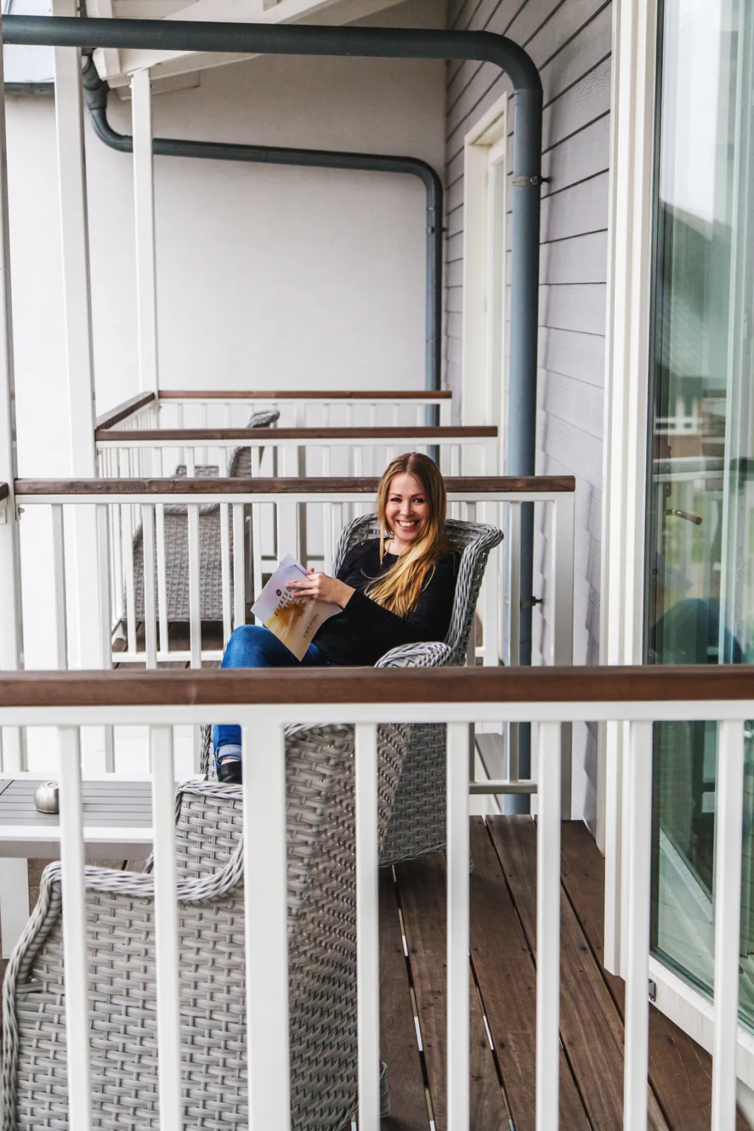 Die weißen Veranden und das hellgraue Holz des Hotel Easy Living in List beamen mich gedanklich an die amerikanische Ostseeküste. Wir sind hier zwar nicht in den Hamptons, aber Ostküstenflair gibt es trotzdem. Denn das Hotel liegt nur weniger Meter vom Lister Oststrand entfernt.