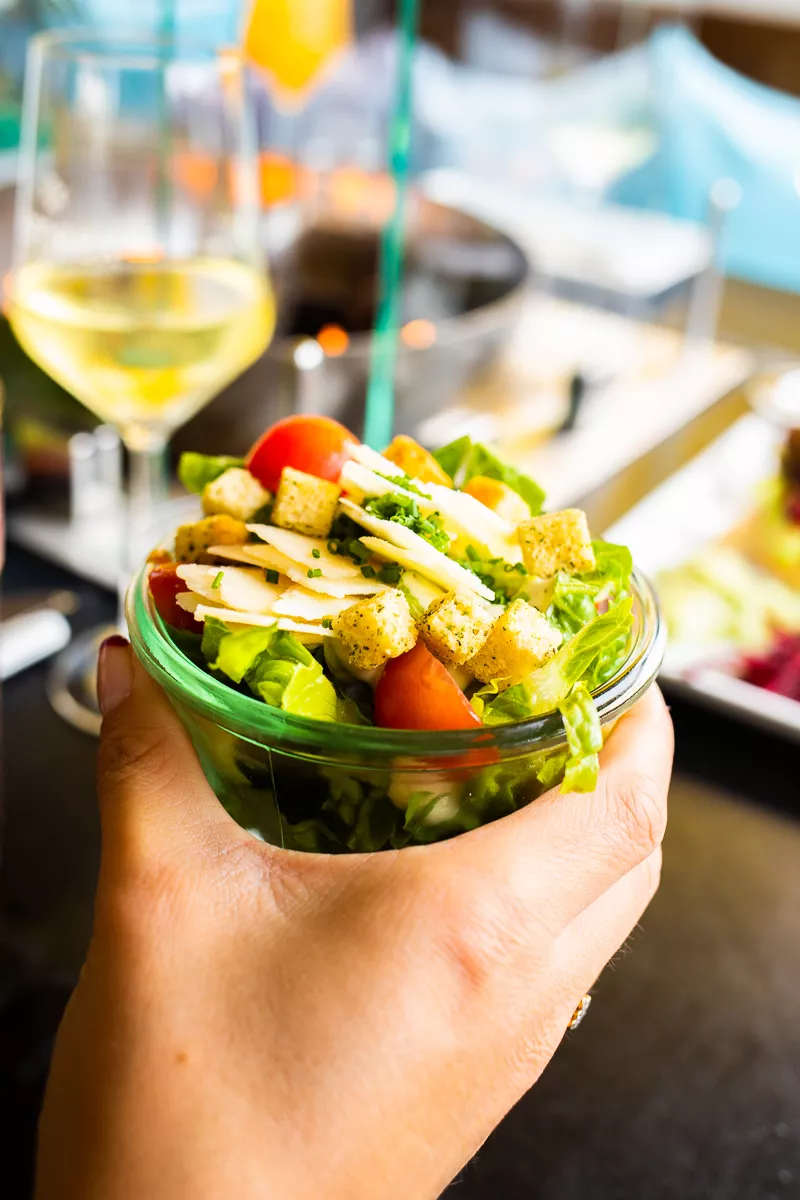 Wie eingangs schon erwähnt, stehen neben Fisch- und Fleischspießen auch viele fleischlose Alternativen auf der Karte von iismeer. So kommen meine vegane Begleiter*innen ebenfalls voll und ganz auf ihre Kosten. Auch die Bistroküche von iismeer hat viele vegetarische oder sogar ganz tierproduktfreie Gerichte zu bieten wie den veganen Burger, den lauwarmen Ziegenkäse, die Reggie-Platte oder Tapas. Praktisch: Vegetarische und vegane Varianten sind in der Speisekarte farblich markiert!