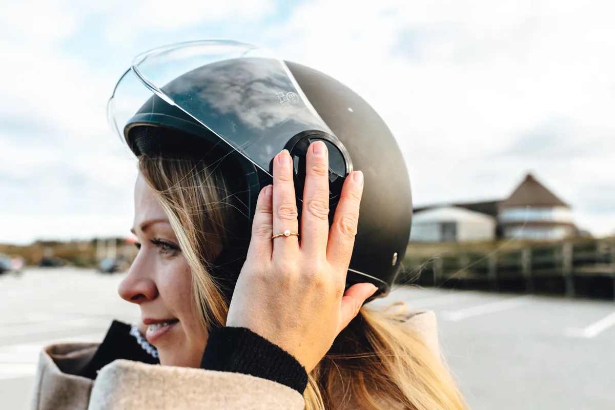 Jetzt ist es Zeit für eine Spritztour! Zuerst stattet mich Jakob mit einem passenden Helm aus, den es bei jeder Buchung dazu gibt. Als ich mich dann skeptisch auf einen der Brekr schwinge, spüre ich sofort ein Gefühl von Freiheit. Die Wendigkeit des Rollers ermöglicht es, sich leicht und mühelos im Verkehr zu bewegen. Die Bedienung ist wirklich einfach und schon nach wenigen Metern habe ich den Dreh raus.