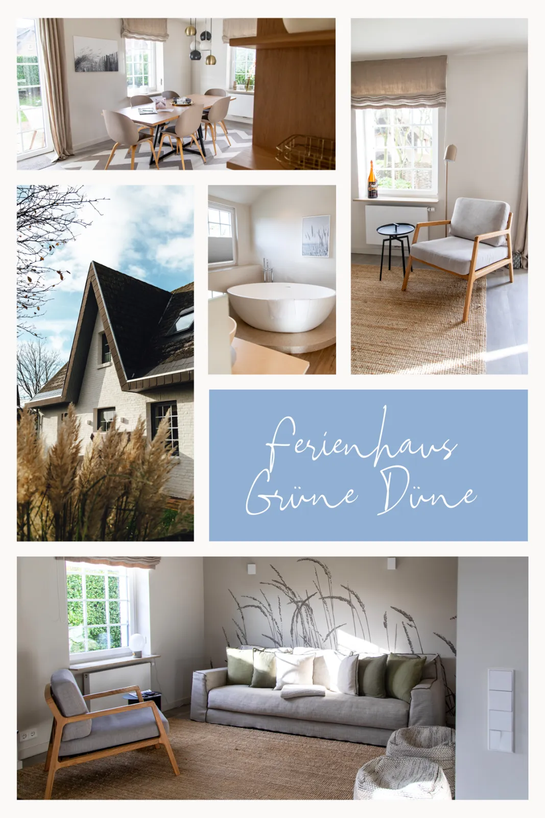 Das Familienunternehmen mit modernen Büroräumen in der Keitumer Chaussee hat mittlerweile eine stattliche Anzahl an Ferienwohnungen im Portfolio, verwirklicht Immobilienträume und hat sich auf die stilvolle Einrichtung von Häusern spezialisiert. Das gemeinsame Ziel, den Gästen einen Traumurlaub zu ermöglichen und sie persönlich und individuell zu beraten, verbindet das junge Paar also. Auf dem Bild siehst du das wunderschöne Ferienhaus Grüne Düne in Wenningstedt, in dessen Einrichtung ich mich auf Anhieb verliebt habe. Hier kannst du mit bis zu 8 Personen Urlaub machen.