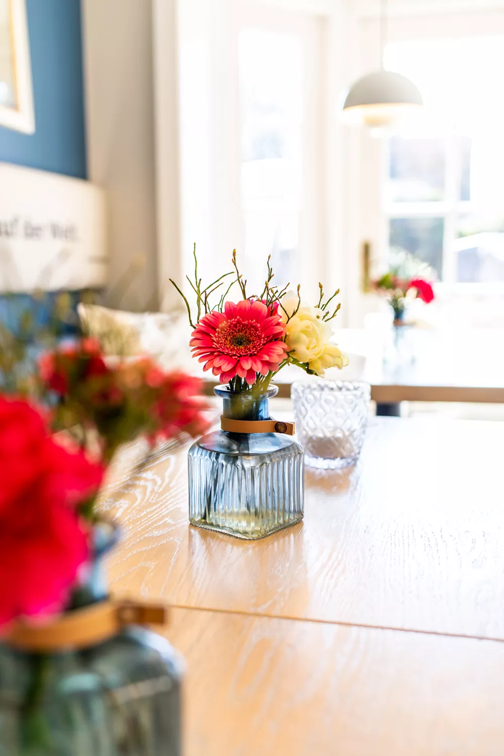 Mir fallen auch die hübschen Blumensträuße auf, die der Blumenbeauftragte Muffel liebevoll arrangiert. Seinen Spitznamen trägt der gebürtige Hamburger übrigens schon so lange, dass kaum noch jemand seinen richtigen Namen kennt.