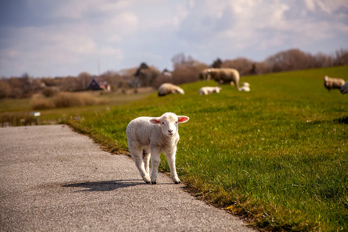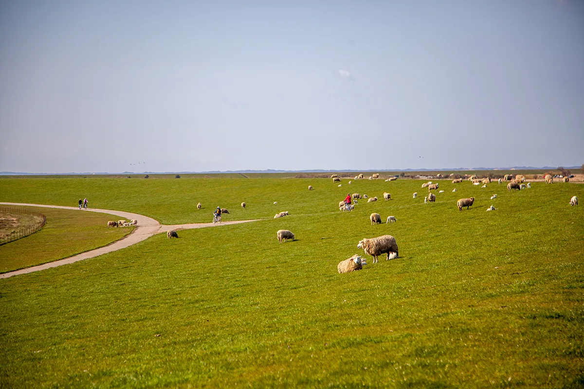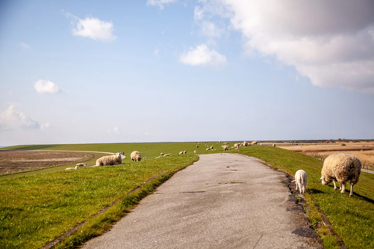 An vielen Stellen des Deiches grasen Schafe und ab April springen die vielen neugeborene Lämmchen vor Freude hin und her. Daher unbedingt vorsichtig fahren! Während die Fahrradstrecke zwischen Westerland und List immer sehr stark frequentiert ist, vor allem zur Hochsaison, ist hier viel weniger los. Es kann schon vorkommen, dass du weit und breit keine Menschenseele siehst.