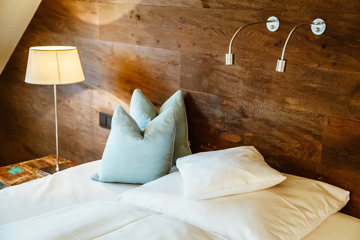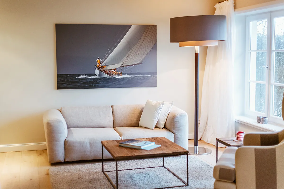Wenn du das einmalige Ambiente des Kontorhauses noch intensiver erleben möchtest, dann ist das Gästehaus mit sieben großzügigen Suiten sicherlich etwas für dich. Der Blick aus den wunderschön eingerichteten Zimmern reicht über das weite Wiesengrün bis zum Deich am Horizont. Lediglich Wasservögel, Pferde, Schafe und Rinder bewegen sich ins Bild.