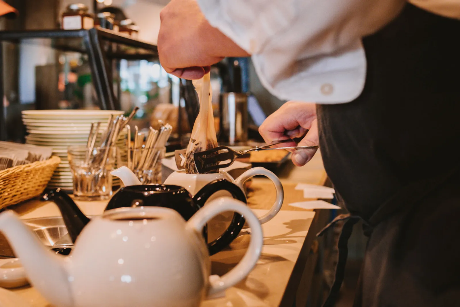 Dein Tee wird hier frisch aufgebrüht und servierfertig in der sogenannten Cosy Teekanne zum Tisch gebracht.
