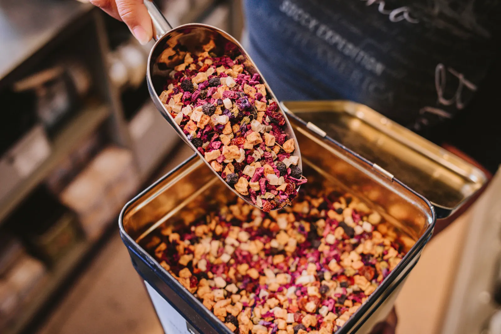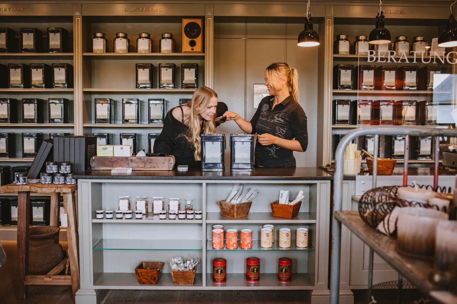 Mays Leidenschaft für Tee ist dabei wirklich ansteckend. Schon als Jugendliche entwickelte die gebürtige Nordfriesin eine große Affinität für das Thema. „Nach der Schule haben meine Mama und ich uns immer einen Tee aufgebrüht, meistens Schwarztee mit Geschmack, und dann gab es zu den Hausaufgaben unser Teatime-Ritual. Wir sind auch öfter nach Tønder in Dänemark gefahren, wo es ein tolles Teegeschäft gibt. Dort haben mich der Duft und die vielen Dosen so fasziniert, dass ich zu meiner Mama sagte: Ich möchte mal in einem Teeladen arbeiten“, erzählt sie mit funkelnden Augen.