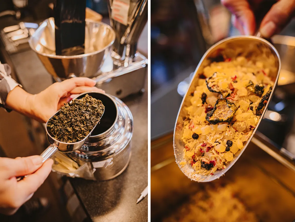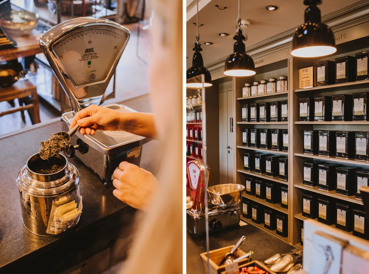 Teeliebhaber:innen können sich im Kontorhaus durch sage und schreibe über 200 qualitativ hochwertige Sorten probieren! Ich kann dir nur empfehlen, dich bei der großen Auswahl einmal beraten zu lassen. Die Mitarbeiter:innen sind so herzlich und nehmen sich gern die Zeit, dir mehr über die unterschiedlichen Teemischungen, Spezialitäten und Raritäten zu erzählen. Dabei wirst du ganz neue Geschmackskompositionen erleben. So ging es mir jedenfalls neulich bei einem spannenden Seminar mit Tee-Sommelière May.