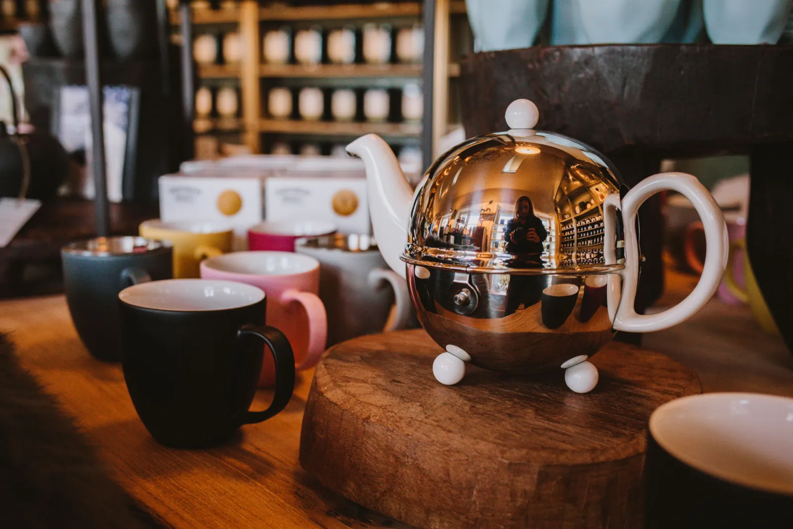 Passend zum Tee findest du sowohl im Onlineshop als auch im Ladenbereich eine liebevoll zusammengestellte Auswahl an außergewöhnlichen Teekannen, hübschen Tassen, Vorratsdosen und anderen Kleinigkeiten. Zu gern stöbere ich hier zwischen hochwertigen Wohnaccessoires, Feinkostprodukten, dekorativen Coffee-Table-Büchern, originellen Geschenkideen und jeder Menge Schönem für die Seele.