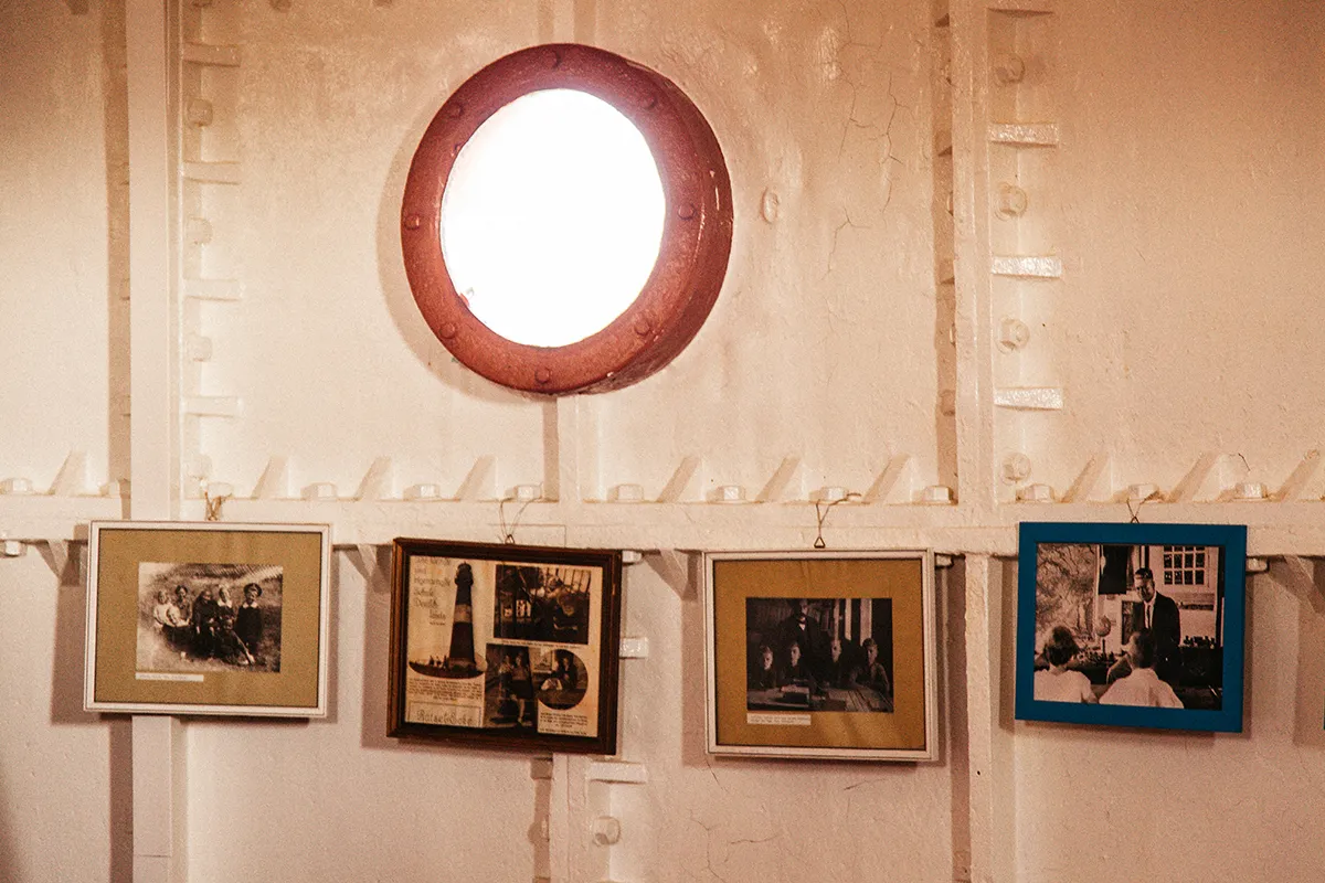Auf einer der oberen Etagen fanden wir ein ehemaliges Klassenzimmer, das bis 1933 als kleinste Schule Deutschlands diente. Hier wurden die Kinder des Leuchtturmwärters und Bahnhofsvorstehers unterrichtet – eine faszinierende Vorstellung!