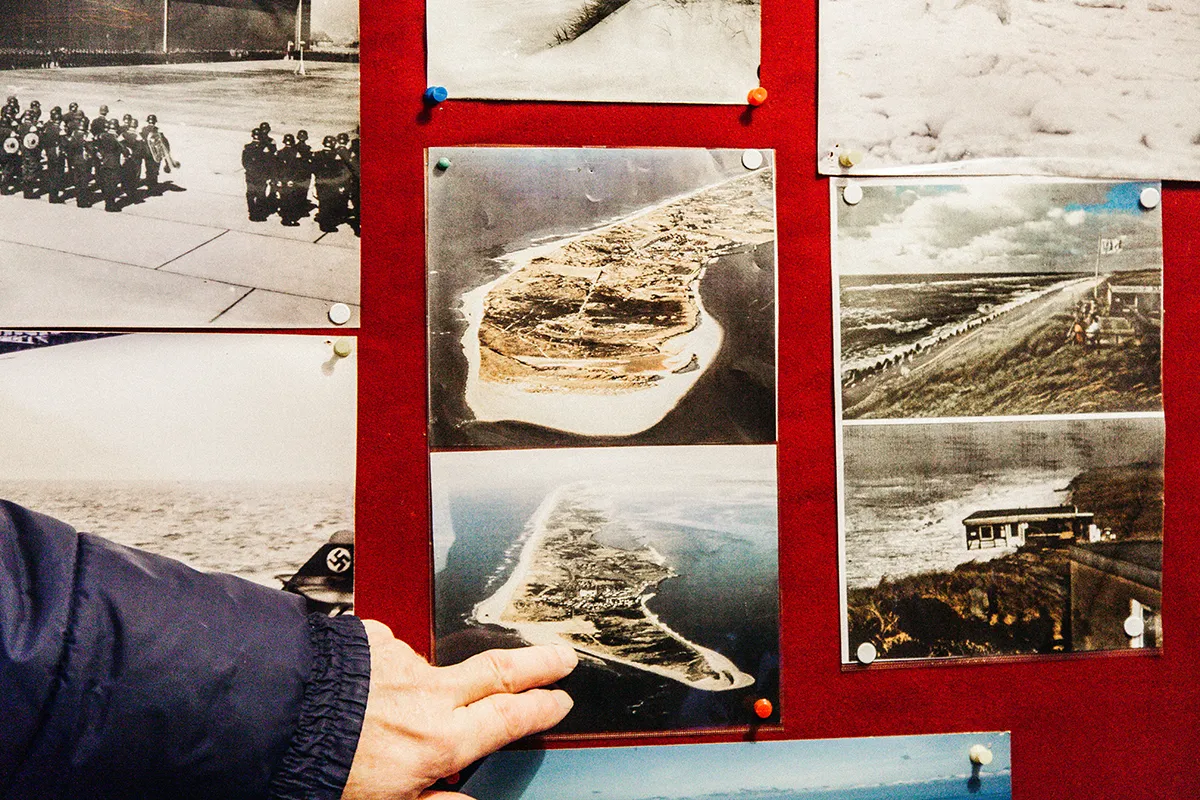 Auf der nächsten Etage tauchen wir tiefer in die Geschichte Hörnums eins. Knud beschreibt einzelne Stationen der vergangenen Jahrzehnte sehr lebendig und anschaulich. Man kann sich gar nicht vorstellen, dass hier früher einmal eine Bahn über die Insel tuckerte. Passagiere von größeren Schiffen legten an einer Seebrücke im Hafen an und fuhren mit der Bahn dann weiter nach Westerland oder Wenningstedt. 1933 prägte die Wehrmacht das Landschaftsbild mit Kasernen und Flugzeugkränen. Der Hafen sah auch noch ganz anders aus als heute.