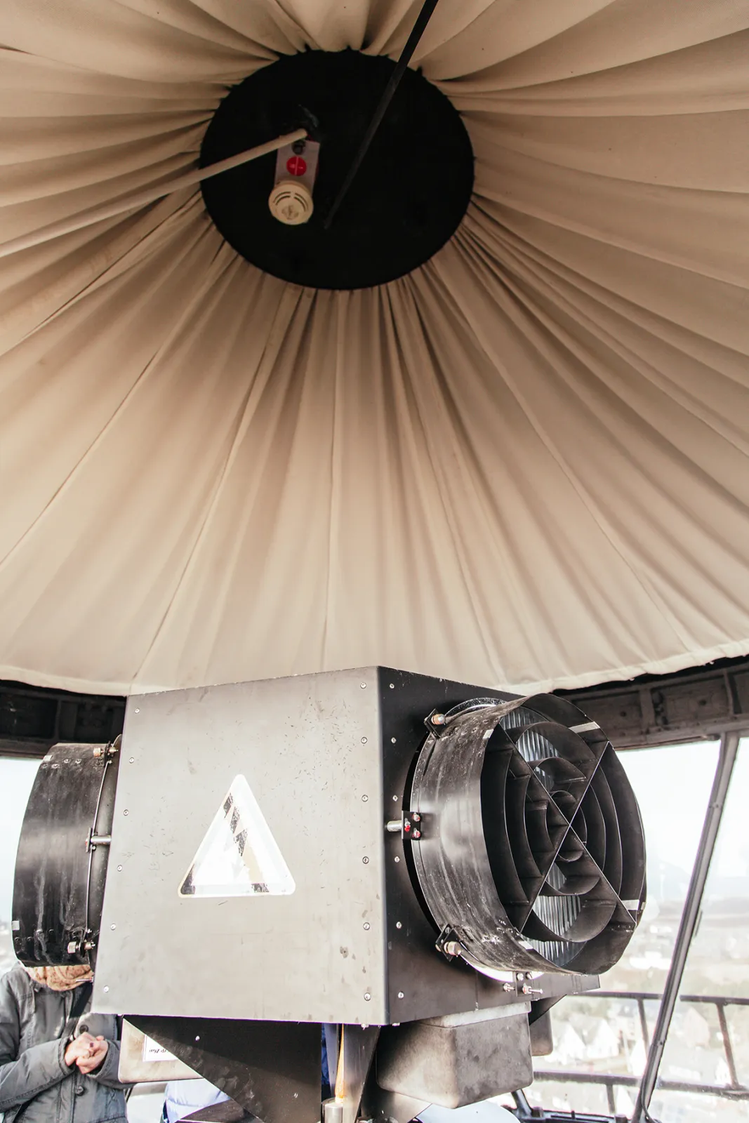 Durch die Bullaugen lässt sich auf den oberen Etagen nun auch schon der tolle Ausblick erahnen, der uns noch erwartet. „Jacken zu, Mützen auf. Es ist pustig, aber von Wind wollen wir da noch nicht sprechen!“, ruft Knud und öffnet die Luke zur Aussichtsplattform. Oben angekommen, belohnte uns ein 360-Grad-Blick über den Inselsüden. Vom Hafen über die Odde bis zur Wattseite – der Ausblick ist einmalig. Knud erklärte uns die RALF-Regel: Rechts Amrum, links Föhr, um die Nachbarinseln zu identifizieren.