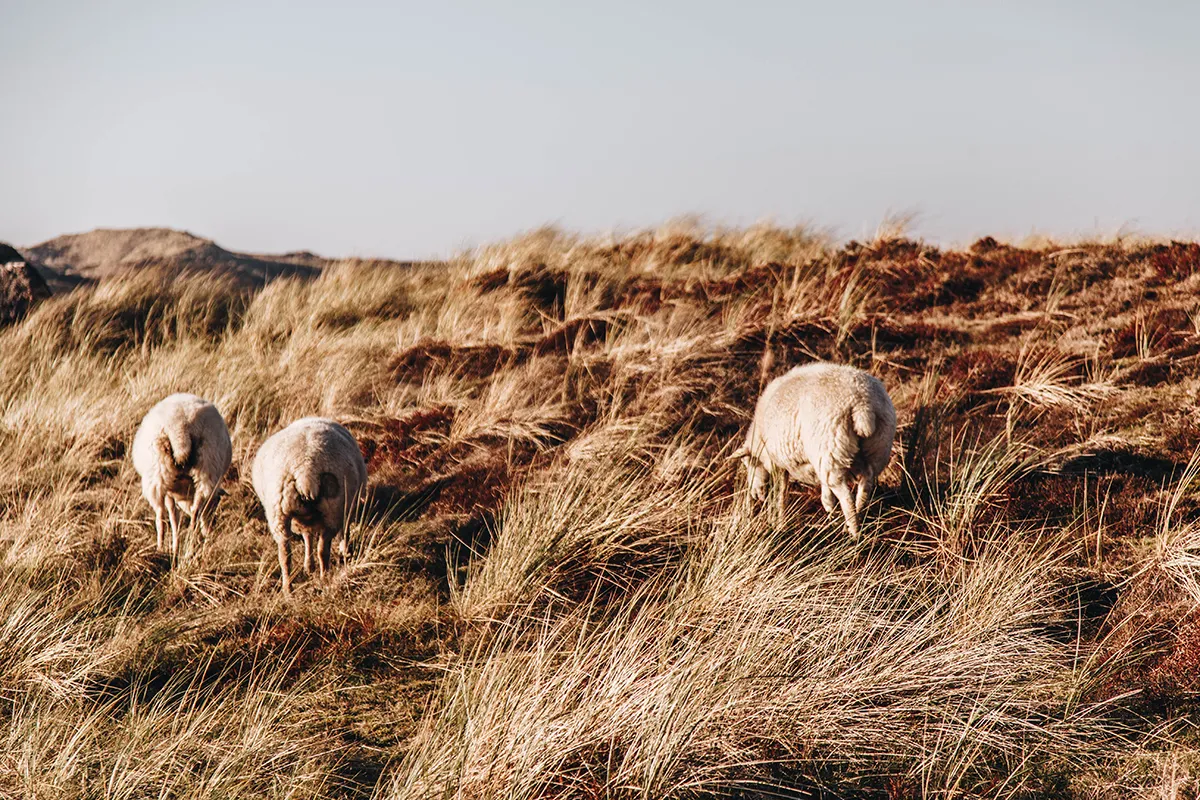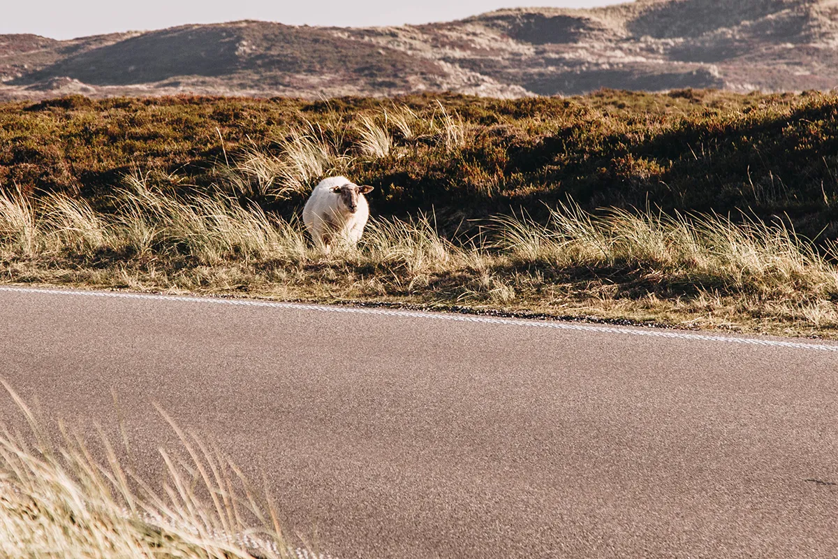 In Schrittgeschwindigkeit fahre ich über die holprige Straße, die zum Lister Ellenbogen führt. Mein Auto wackelt und wippt mit jedem Schlagloch. Das kann mich aber nicht davon ablenken, die wunderschöne Landschaft um mich herum zu bestaunen. Denn die Straße führt durch die sanften Dünentäler des Listlandes. Hier und da versteckt sich ein freilaufendes Schaf. Ich fahre noch vorsichtiger, falls es plötzlich auf den gepflasterten Weg hüpfen sollte.