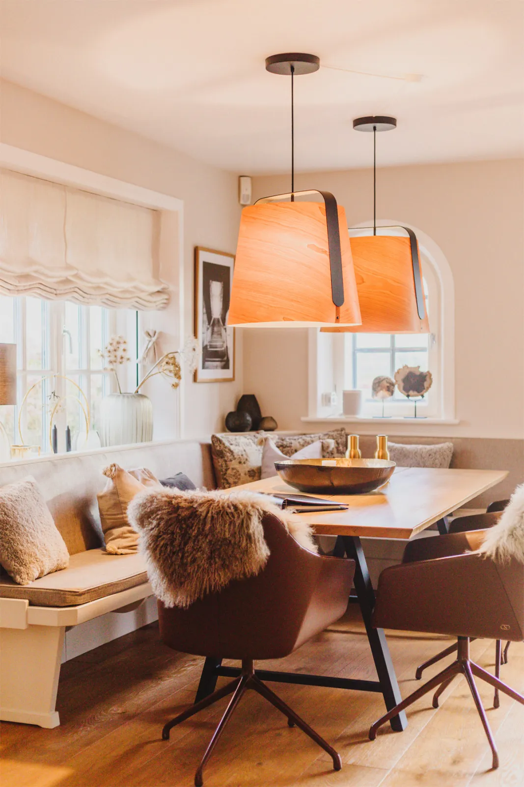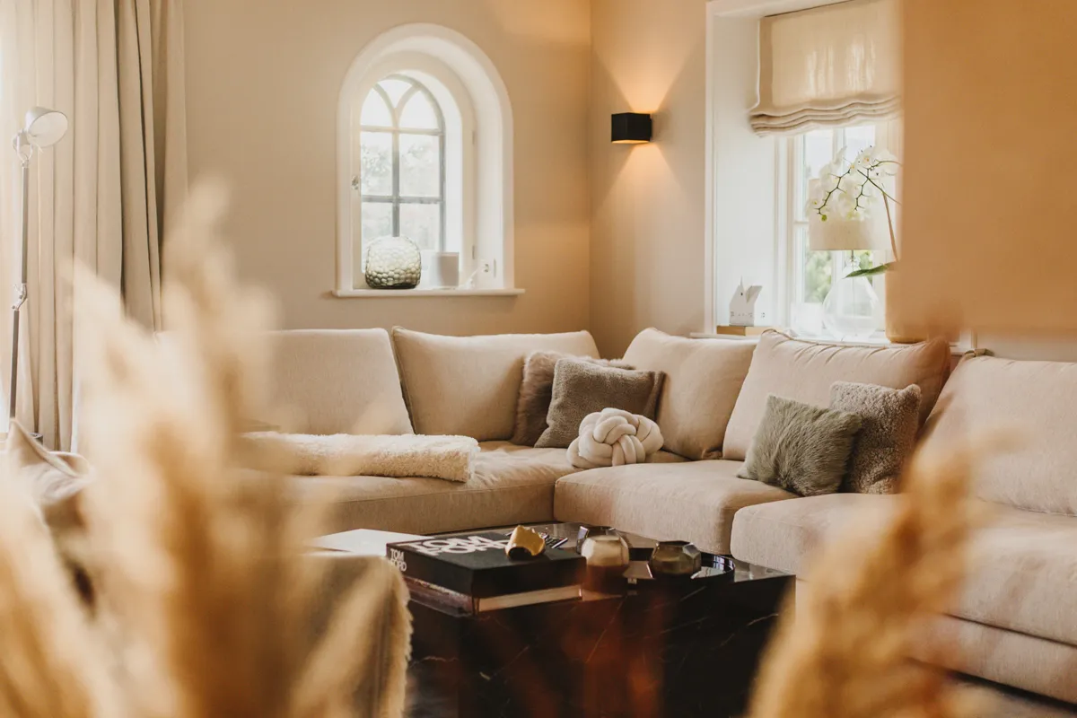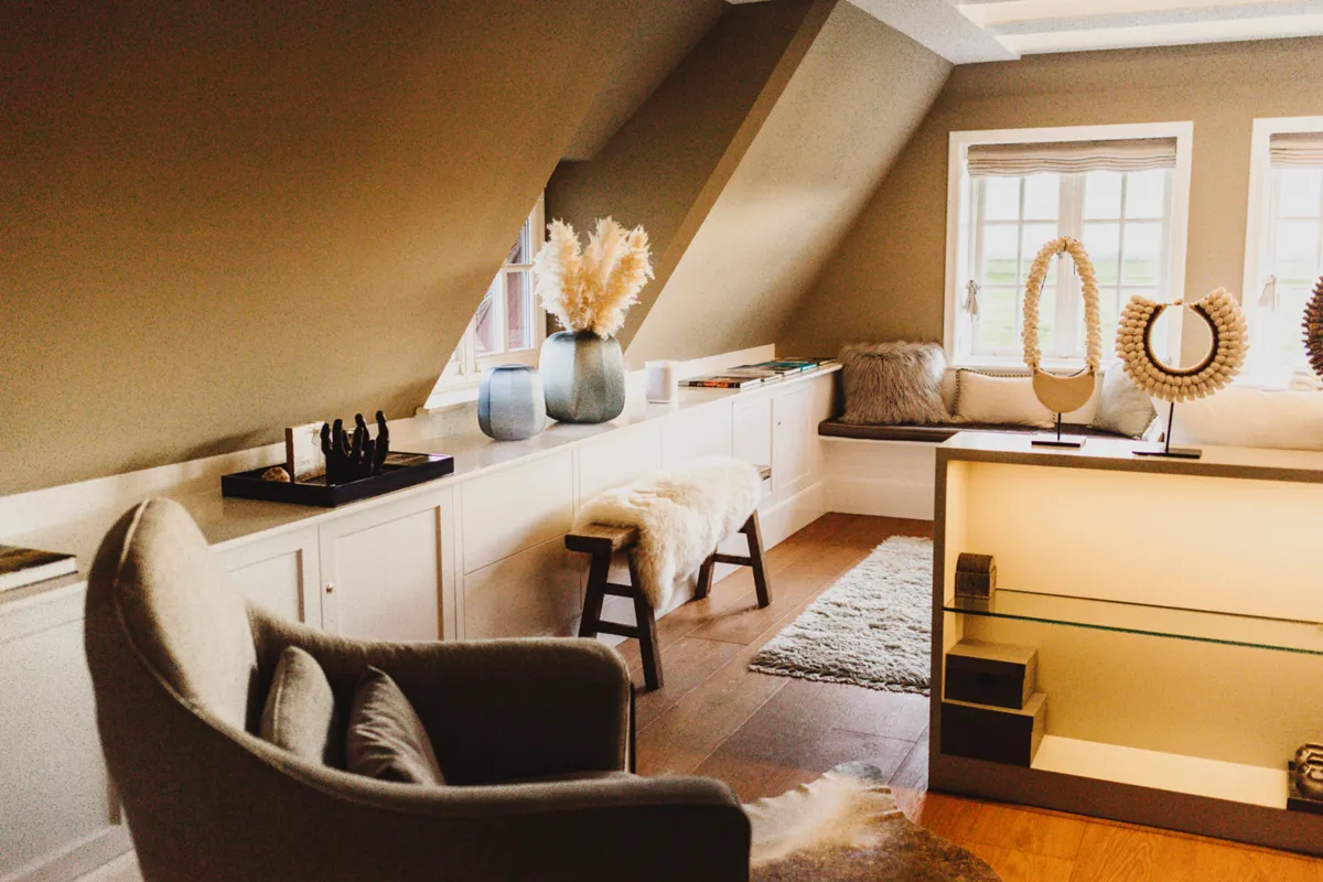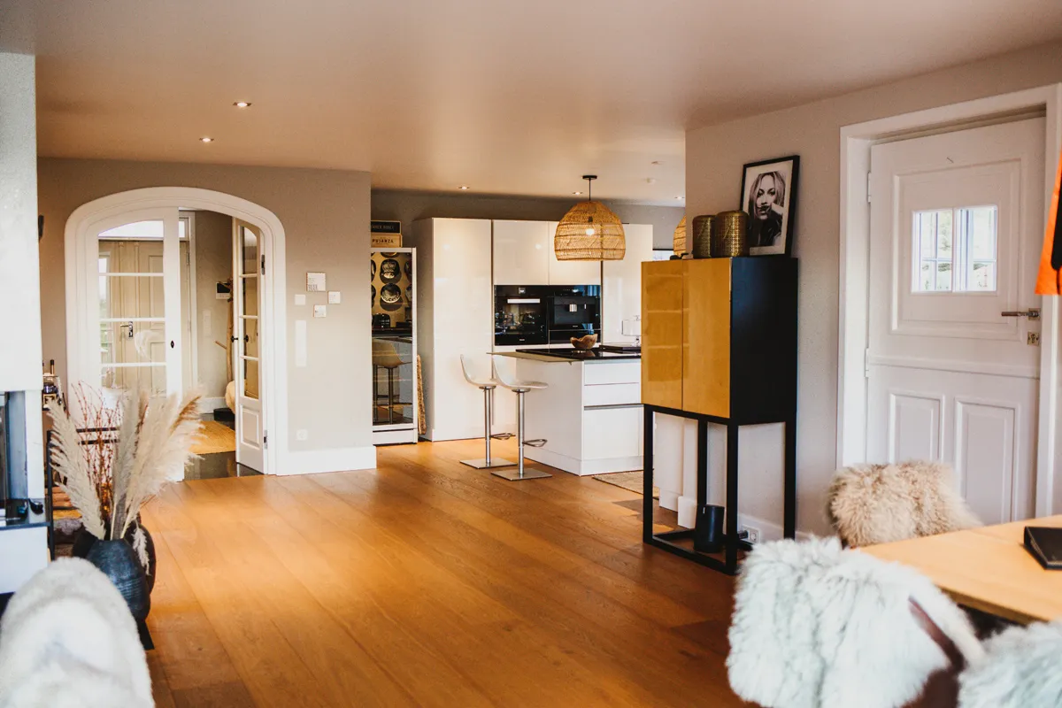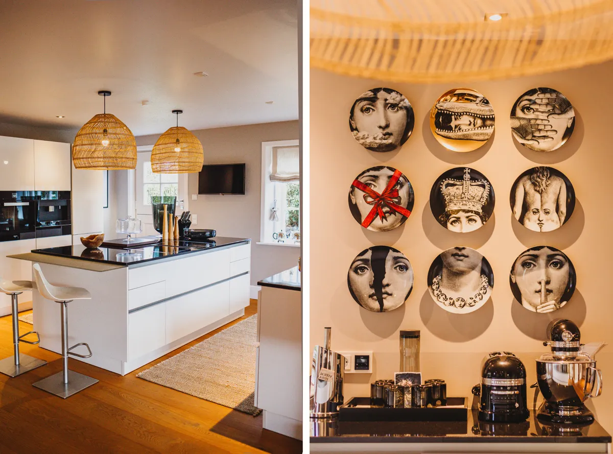 Mit Betreten jedes Raumes fühle ich mich, als hätte ich gerade ein Geschenk geöffnet. Jedes Zimmer überrascht mich aufs Neue. Mit liebevoller Dekoration, mit hochwertigen und fein abgestimmten Möbeln, mit schicken Materialien und Farben. Im Erdgeschoss befindet sich neben einem stilvoll gestalteten Schlafzimmer mit Bad en Suite die geräumige Luxus-Küche mit allerbester Ausstattung. Offen gestaltet, geht sie in das große Wohn- und Esszimmer über. Details wie Duftkerzen, Orchideen und besondere Kissen erzeugen eine Wohlfühl-Atmosphäre, in die ich am liebsten dauerhaft einziehen würde.