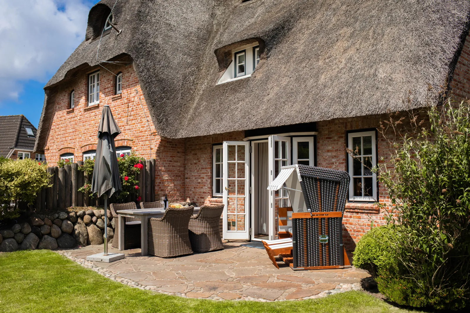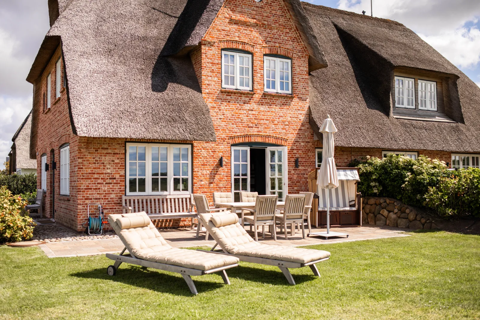 Das exklusive Reetdachhaus erstreckt sich auf ganze 294 m2, die sich auf drei Etagen verteilen. Damit bietet es ausreichend Platz für bis zu sechs Personen. Familien mit Kindern ab 12 Jahren oder befreundete Pärchen sind hier also genau richtig. Oder auch all diejenigen, die einen Sinn für schöne Einrichtung haben und sich auch gerne mal etwas Luxus gönnen. Denn die Ausstattung des 5-Sterne-Ferienhauses lässt wirklich keine Wünsche offen.
