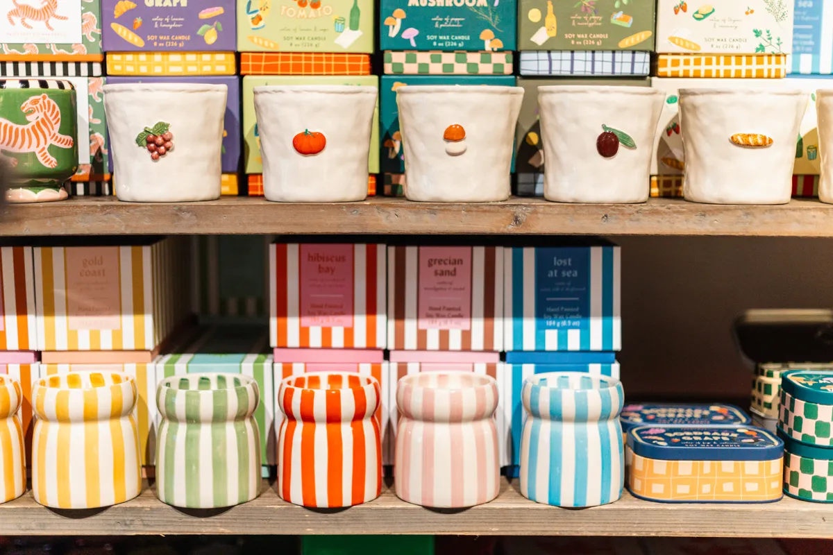 Living & Home Sylt erstreckt sich über zwei Ebenen und ist eine echte Schatzkiste für alle, die schönes Design lieben. Hier gibt es hübsches Porzellan, kuschelige Kissen und Decken, besondere Lampen, stilvolle Accessoires für jeden Raum und eine riesige Auswahl an Duftkerzen – darunter sogar eine exklusive Kollektion, die Steffi mit der Marke Wijck entworfen hat.