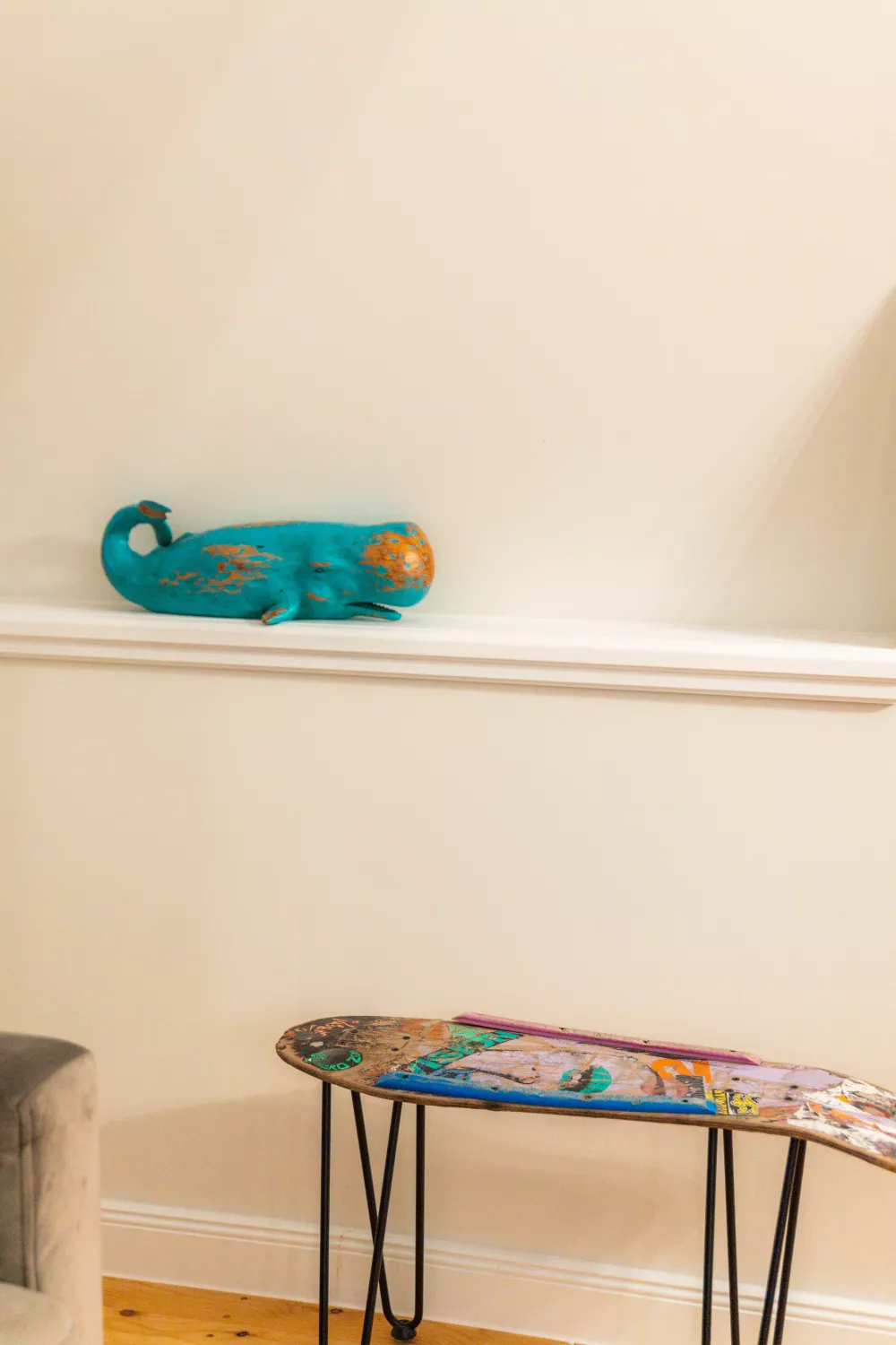 Rebecca und Jens sind selbst Inselkinder mit einer Vorliebe für Surf’n’Skate und rockige Musik. Das spürt man im ganzen Haus: Vintage-Skateboards, originale Tourplakate und kleine Überraschungen an jeder Ecke. Besonders cool fand ich den Fund einer alten friesischen Flagge im Flur – entdeckt während der Renovierung und natürlich liebevoll erhalten.