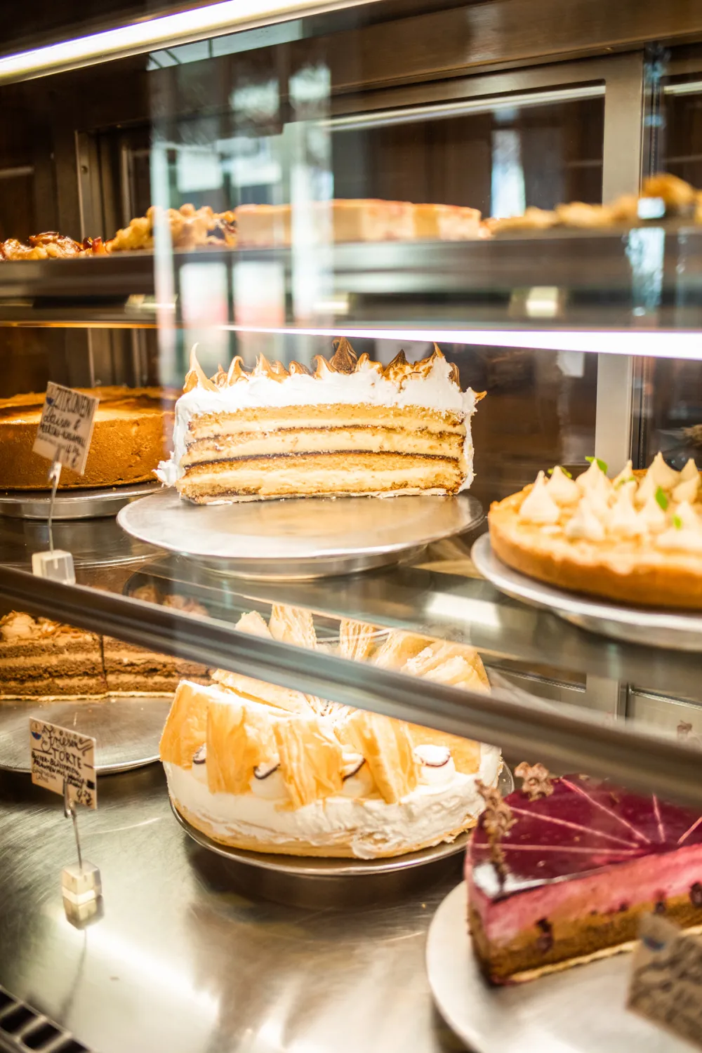 Nachdem ich mir in der Backstube ordentlich Appetit geholt habe, lasse ich mir im Café nebenan ein leckeres Stück Apfeltarte schmecken. Auch hier steckt jede Menge Geschichte und Tradition in der Einrichtung. Jens erzählt mir, wie die rustikalen Elemente der 60er Jahre mit der Zeit ersetzt wurden. Vor einigen Jahren haben die Lunds nämlich renoviert. Dabei wurde der Charme der damaligen Zeit neu interpretiert: Die urigen Retro-Stühle bekamen frische Polster, das Fischgrätparkett neuen Glanz und dazu zogen neue „alte“ Lampen vom Antiquitätenhändler ein.