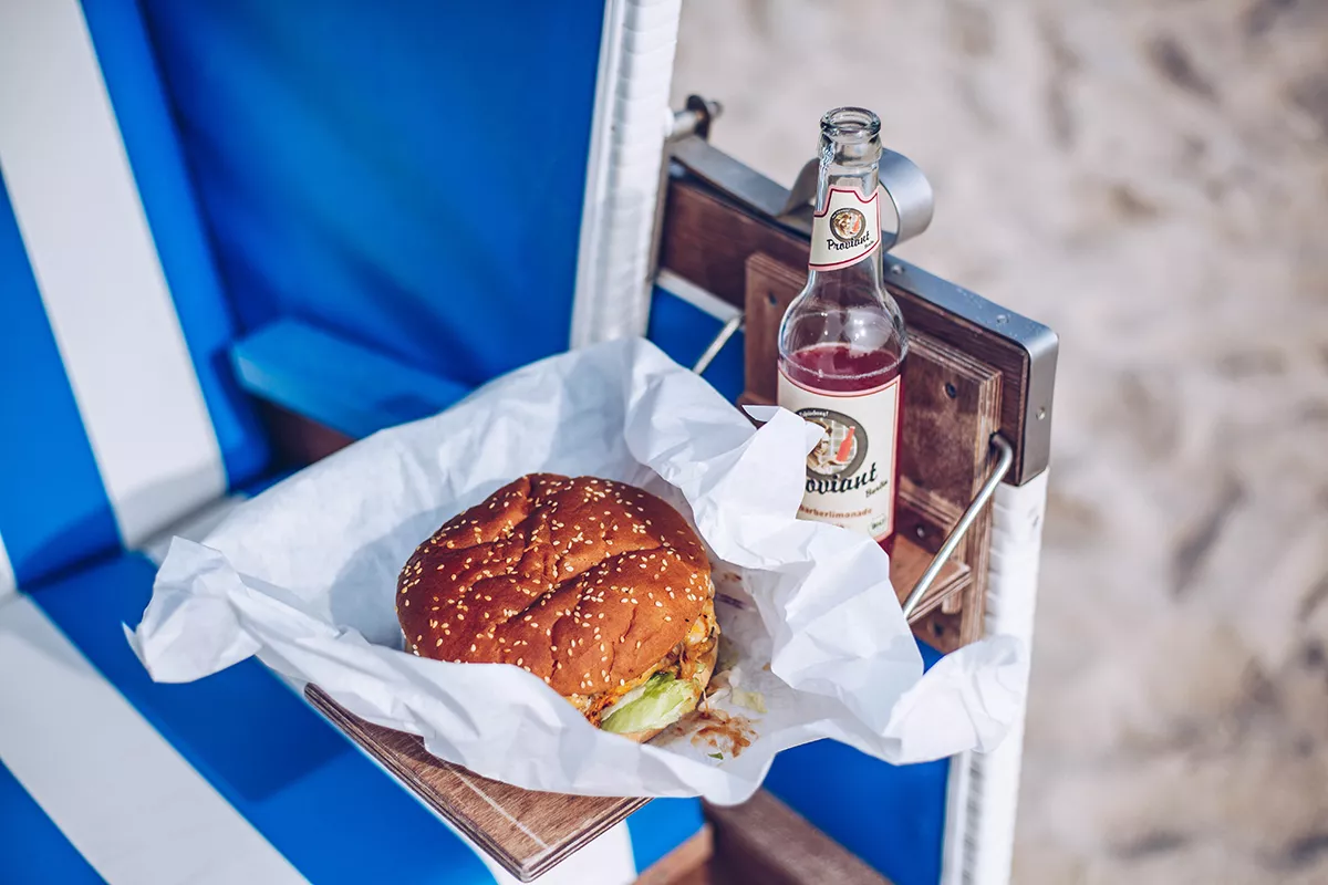 Heißhunger auf einen richtig guten Burger? Dann ist die Beach Box in Westerland der perfekte Ort für dich! Mein Favorit ist der Lady’s Burger, ein leichterer Burger mit dünnem Patty, frischem Salat, Tomate, Gurke, Röstzwiebeln und schmelzendem Käse – und das für nur 6,90 Euro. Gönn dir deinen Burger am besten im Strandkorb mit Meerblick.