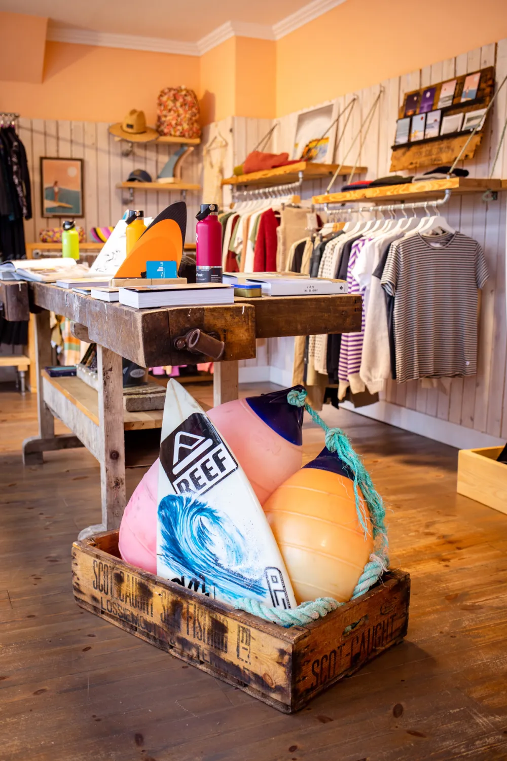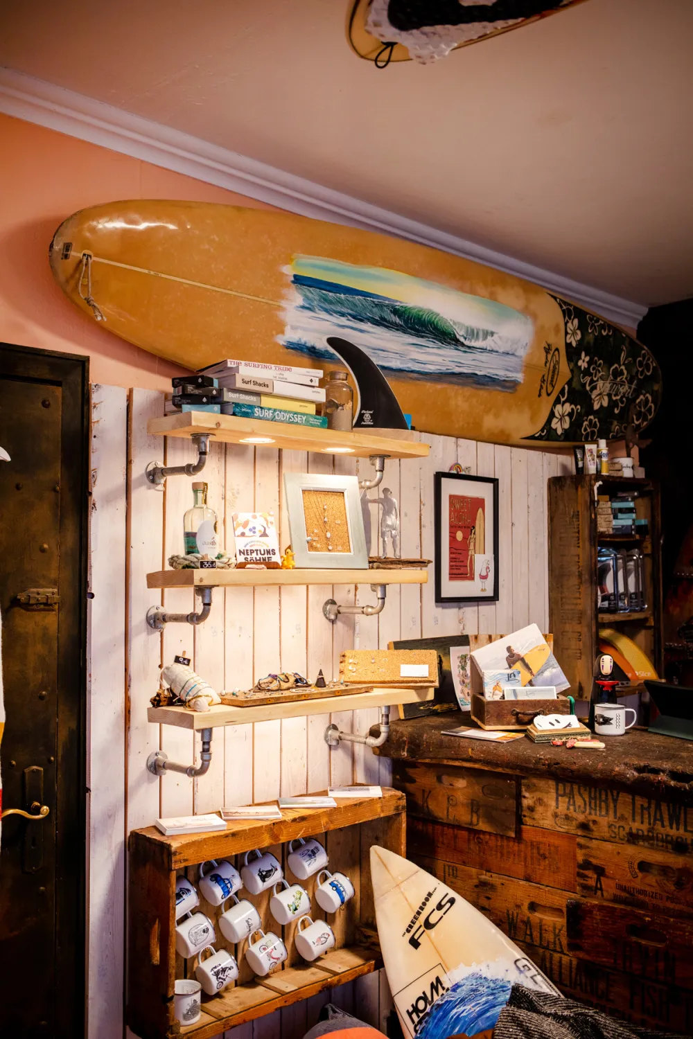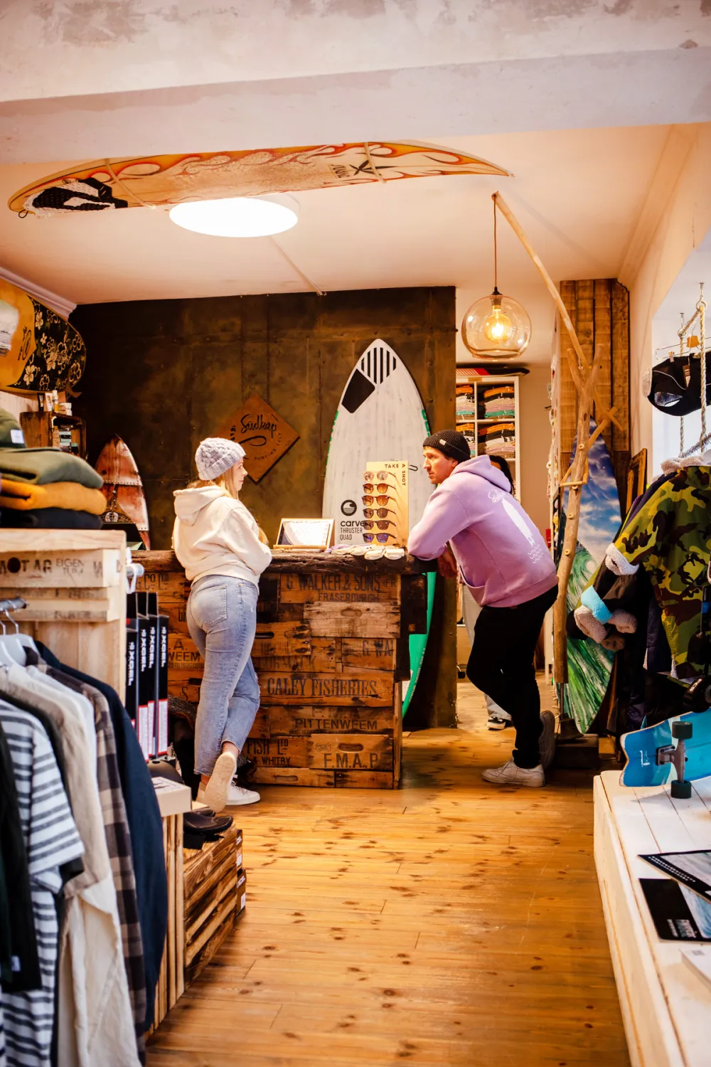 Bereits beim Betreten des Salty Element Stores riecht man förmlich das Salz in der Luft. Die Einrichtung und die liebevoll ausgesuchte Dekoration unterstreichen dieses Strandfeeling, ebenso wie die Dekoration, bei der Surfbretter auf Treibholz und Taue treffen. Überall gibt es maritime Prints und Coffee Table Books zu entdecken und der wunderschöne Schmuck versprüht echte Good Vibrations. Hier werden ganz sicher nicht nur Surfer*innen fündig!