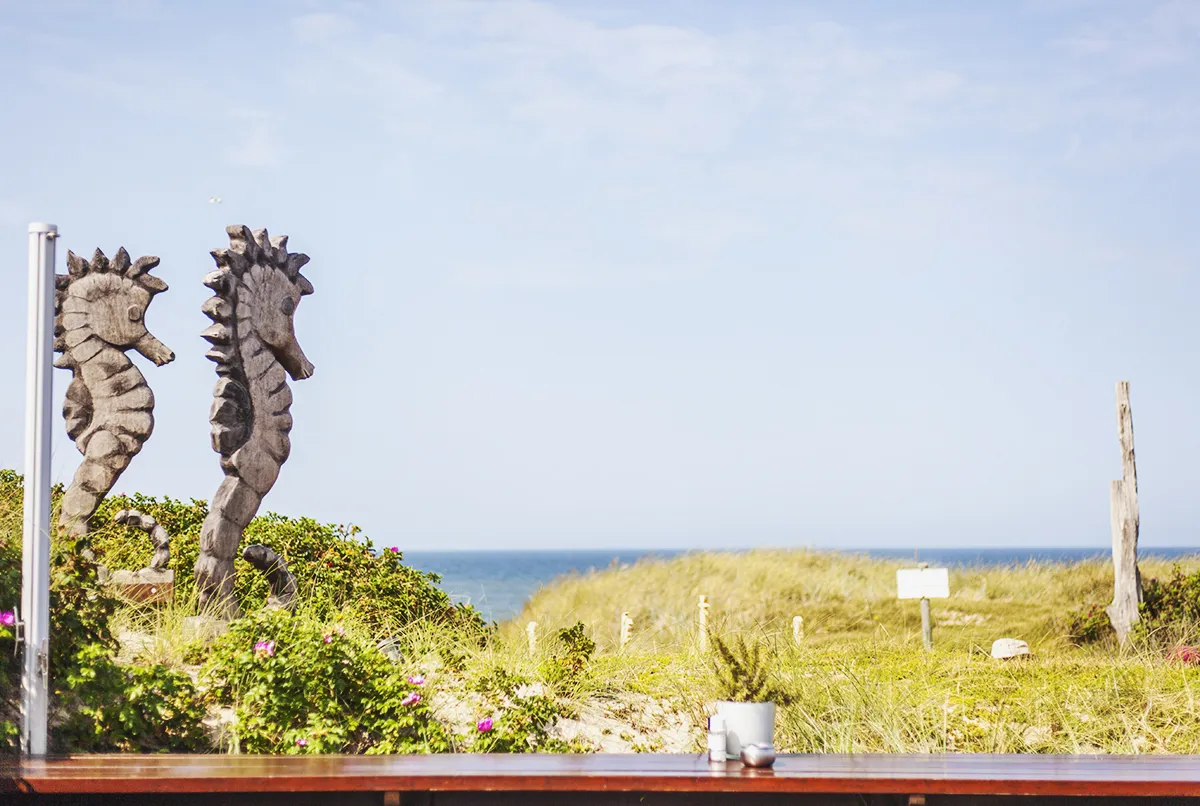 Der Samoa-Strand verdankt seinen Namen dem charmanten Restaurant Samoa Seepferdchen, das von zwei beeindruckenden Seepferdchen-Statuen bewacht wird – eine echte Sylter Institution. Vor über 30 Jahren wirbelte Gastgeber Kalle in dem charmanten Holzhaus mit Bretterbuden-Flair herum, bevor sein Neffe Jan die Leitung übernahm. Im Sommer gibt es für mich keinen besseren Platz als im Strandkorb auf der windgeschützten Terrasse. Mit einem Glas des hauseigenen Seepferdchen-Weins in der Hand und dem Meeresrauschen im Ohr – besser geht’s nicht.
