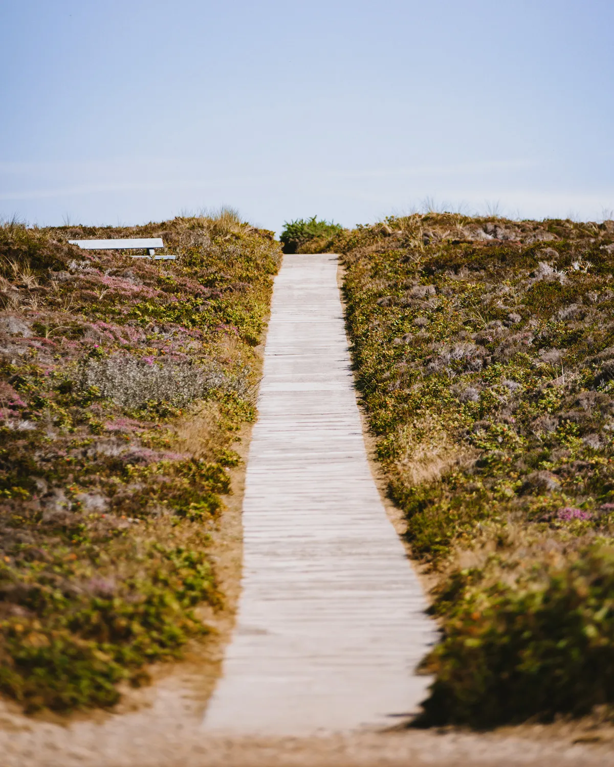 Auf der Route befinden sich zudem hinter jeder Kurve versteckte Strandaufgänge, die sich über hölzerne Treppe durch die Dünentäler schlängeln. Jedes Mal entscheide ich mich für einen anderen Weg, um immer wieder neue Inselfacetten zu entdecken. Hier sind die Strände zudem oftmals nicht so überladen wie in Westerland.