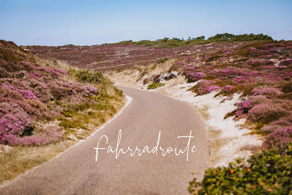 Vom S-Point aus folge ich dem Fahrradweg über Wenningstedt Richtung Kampen und List. Das ist meine liebste Fahrradroute, da sie durch die schönste Landschaft überhaupt führt. Man hat das Gefühl, als würde man in eine Postkarte eintauchen. Ende August hat die Heideblüte nämlich ihren Höhepunkt erreicht und alles erstrahlt in schillernden Lilatönen. Dazu kommt der betörende Duft, der mir ein Dauergrinsen ins Gesicht zaubert. Alle paar Meter könnte ich anhalten, um Fotos zu knipsen von all der Schönheit, die mich hier umgibt.