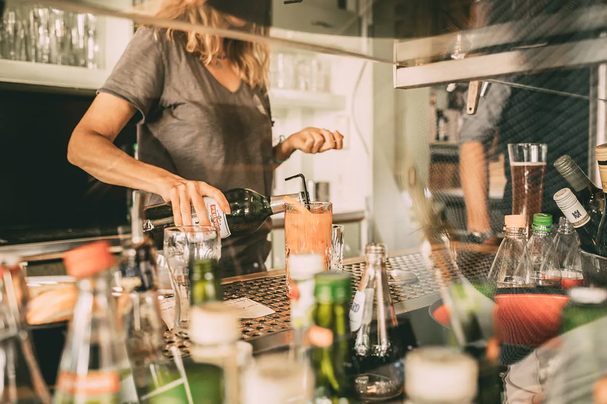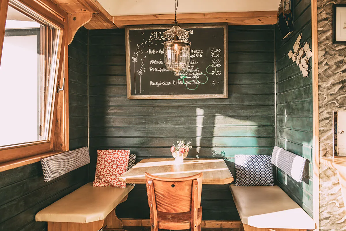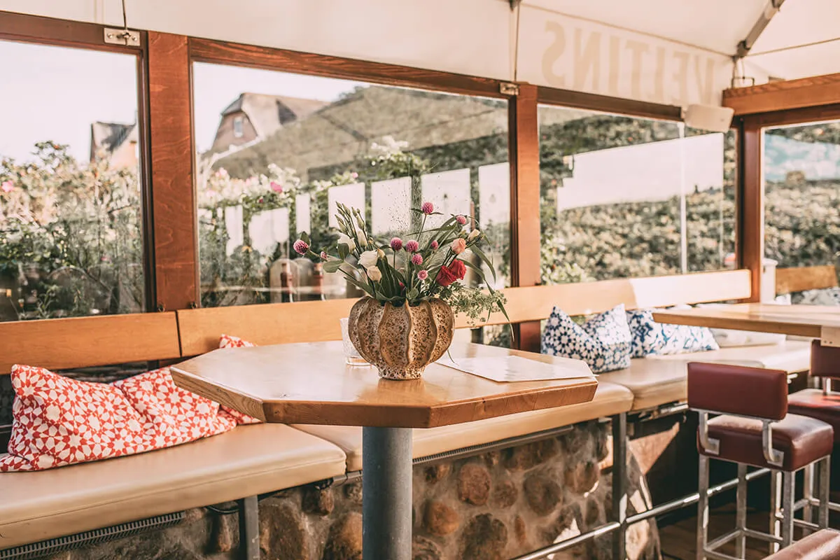 Durch die vielen bunten Kissen, die dir von außen schon durch die großen Fenster entgegenleuchten, und rustikalen Holzmöbel ist es hier so richtig muckelig. Ich mag die maritimen Details, das Surfer-Flair und das lässige Ambiente. Es stört niemanden, wenn du nach einem Strandtag in Flipflops und mit Sand in den Haaren auf einen Sundowner oder ein leckeres Essen vorbeischaust.