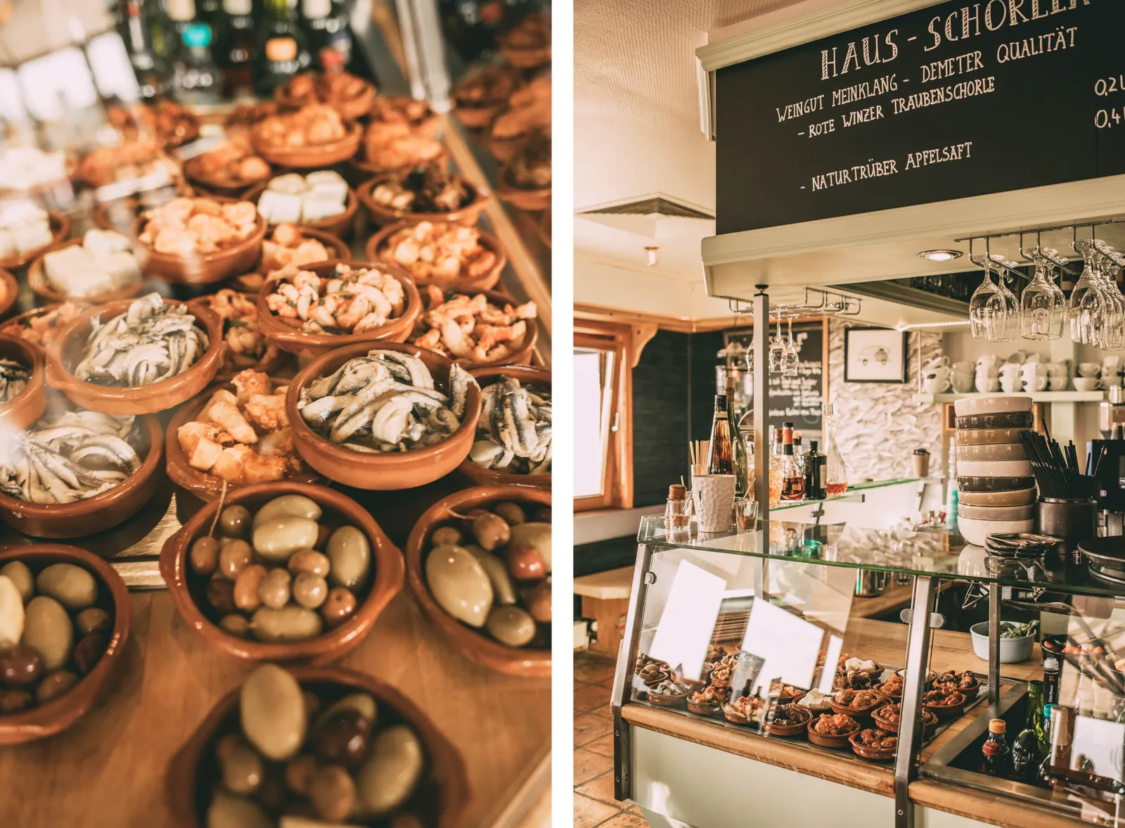 Die Speisekarte hat trotzdem mehr zu bieten als ein 08/15 Imbiss. Zu meinen Highlights gehören die Tapasvariationen, die du dir an der Theke selbst zusammenstellen darfst. Ob Flußkrebse, Pflaumen im Speckmantel, Oliven oder Hackbällchen – ich hab sie alle schon probiert. Lecker!