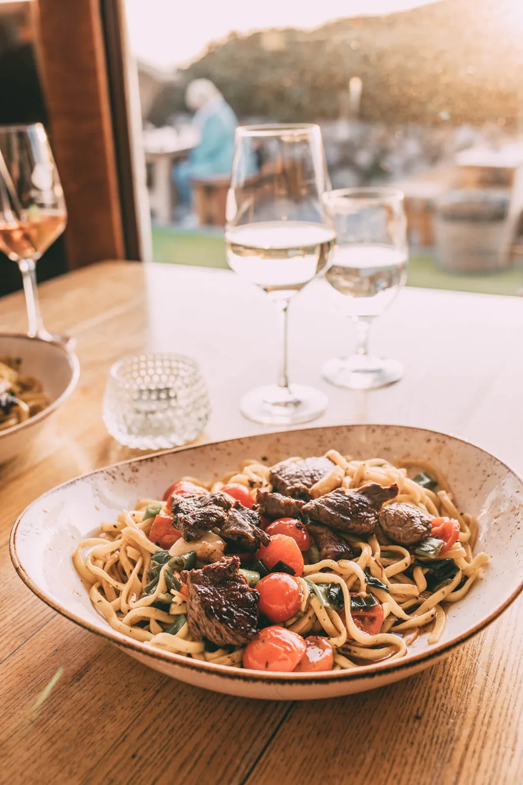 Eine weitere Empfehlung von mir: die getrüffelte Tagliarini mit Rinderfiletstreifen und Frühlingslauch. Mit dem Kalbschnitzel oder dem Rumpsteak kannst du aber auch nicht viel falsch machen. Überhaupt finde ich, dass die bodenständige, mediterrane Küche hier super gut hinpasst – nicht überkandidelt, aber trotzdem alles frisch und lecker zubereitet. Nicht zu vergessen die vielseitige Weinkarte. Die Schoko-Tarte als Dessert solltest du dir in keinem Fall entgehen lassen.