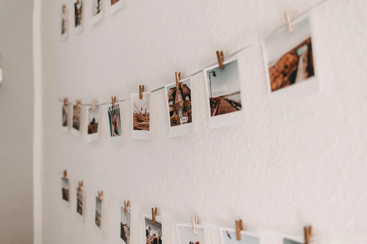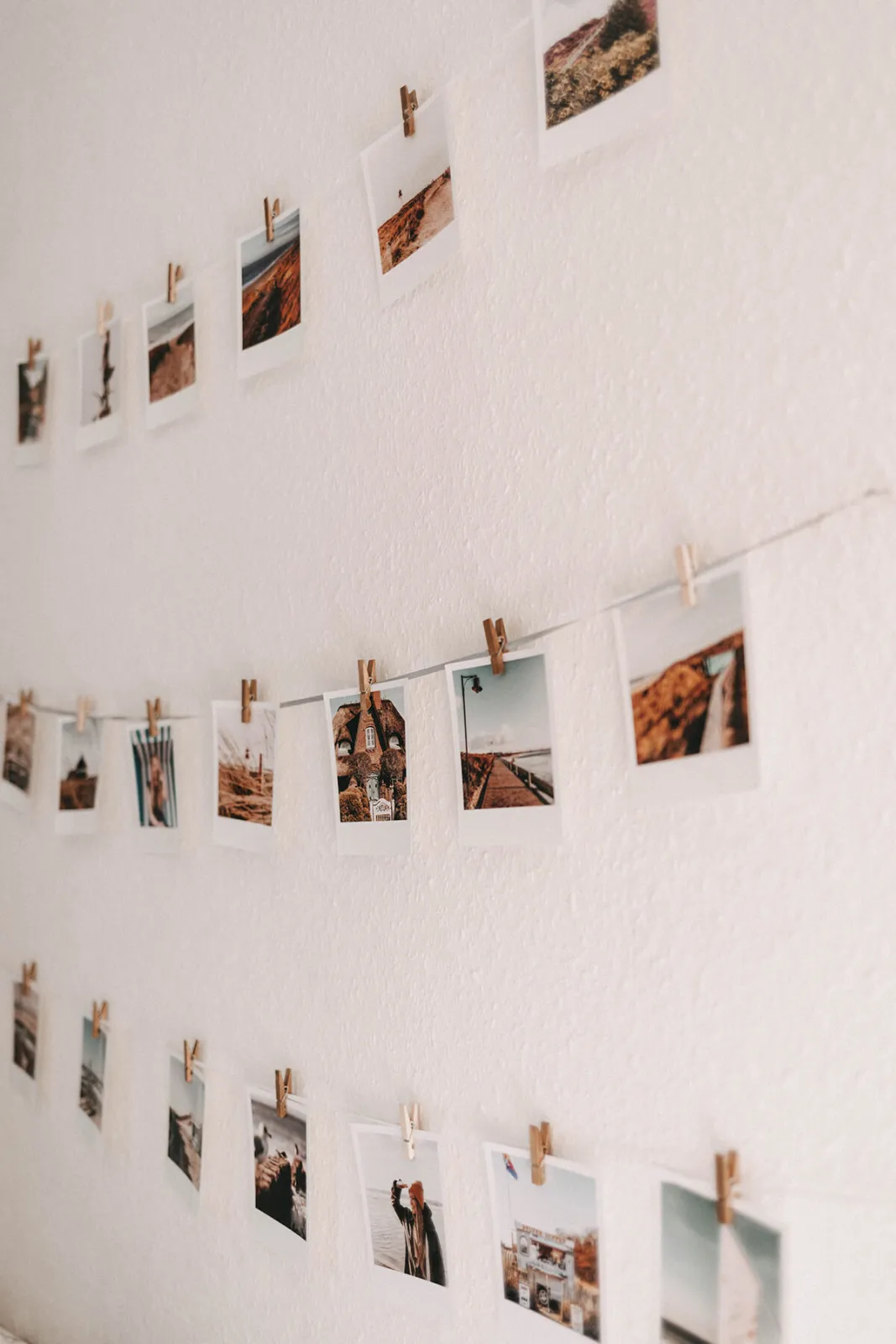 Jetzt befestigst du deine Sylt-Bilder, so wie du es vom Wäscheaufhängen kennst. Achte bei der Verteilung der Bilder darauf, dass das Gesamtbild stimmig ist: Lasse immer einen gleichen Abstand zwischen den Bildern und achte auf eine gleichmäßige Verteilung von Farben und Motiven.