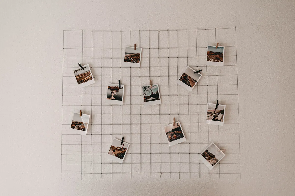 Wenn du es zuschneiden lässt, sei bitte vorsichtig mit den Schneidekanten, denn die sind sehr scharf! Am besten schleifst du die Enden des Gitters gründlich mit etwas Schleifpapier ab, bevor du es an der Wand befestigt. Auch hier kannst du Nägel, Haken, Schrauben oder etwas anderes verwenden, um das Gitter sicher an die Wand zu bringen. Anschließend kannst wie bei Idee 1 deine Bilder mit Wäscheklammern daran befestigen.